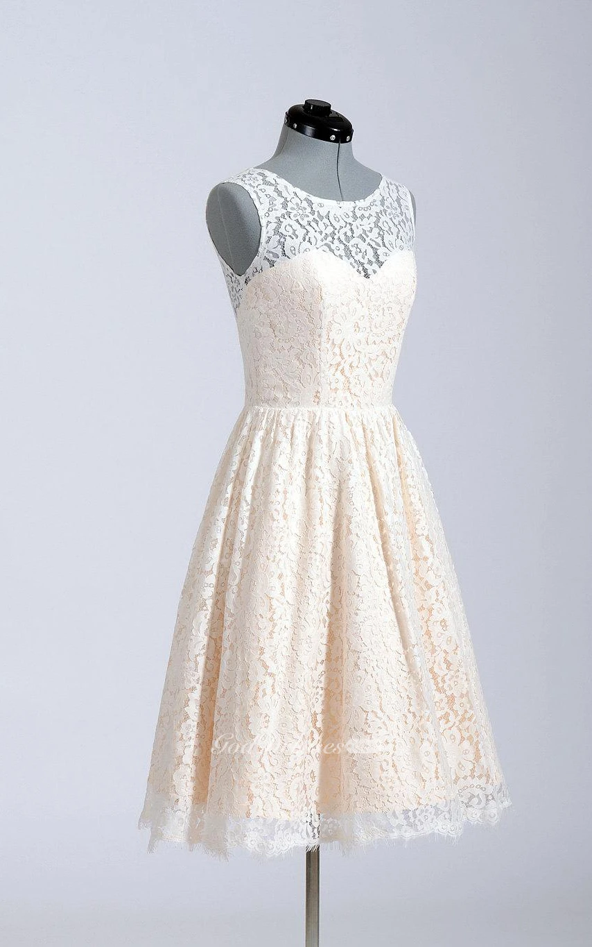 Sleeveless A-Line Short Lace Dress With Illusion Back