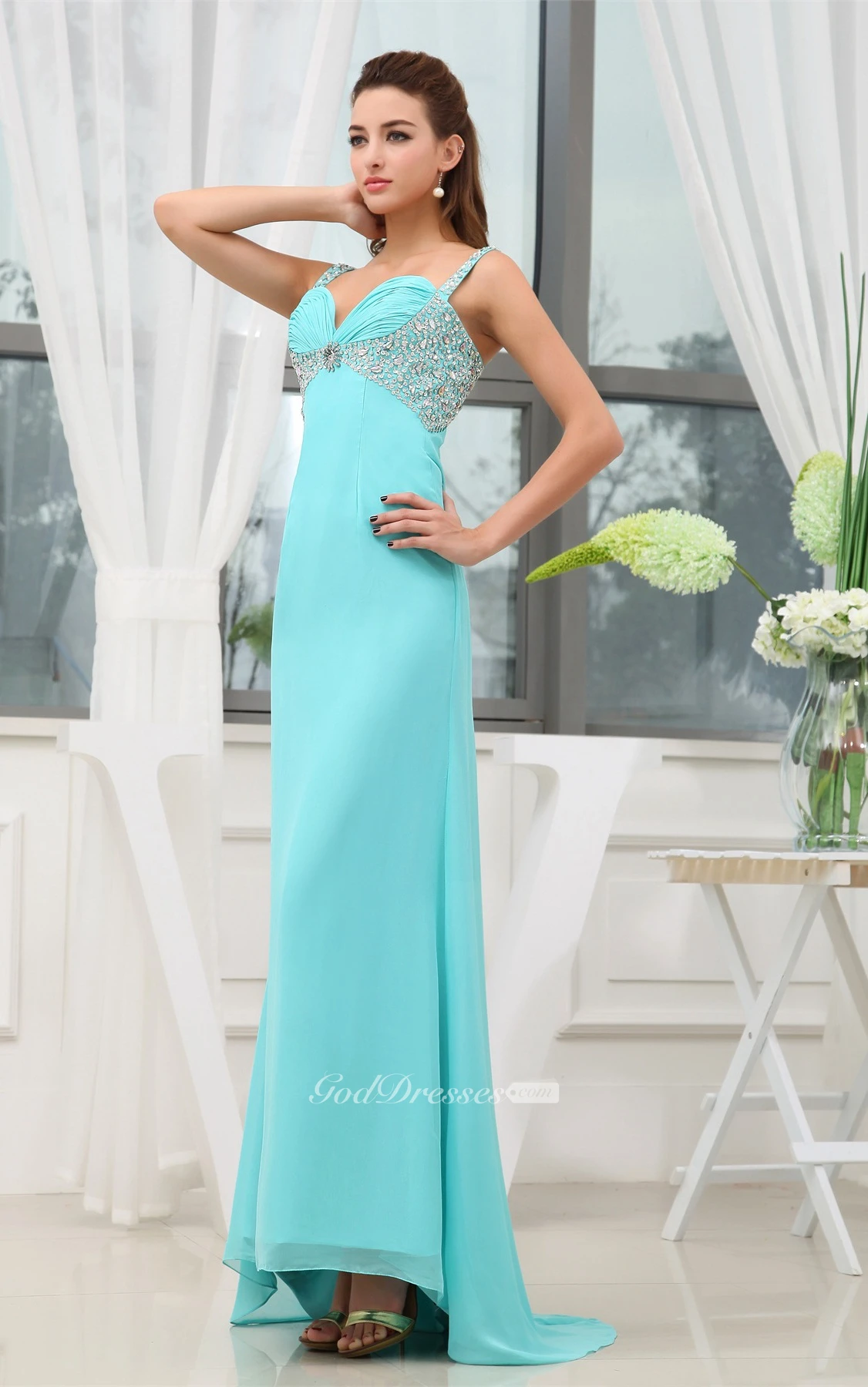 Sleeveless A-Line Spaghetti Straps Asymmetrical Dress With Beadings