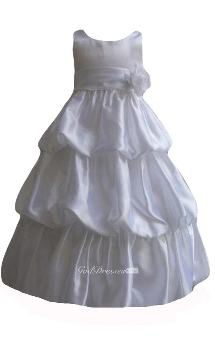 Sleeveless A-line Taffeta Dress With Flower and Ruffles