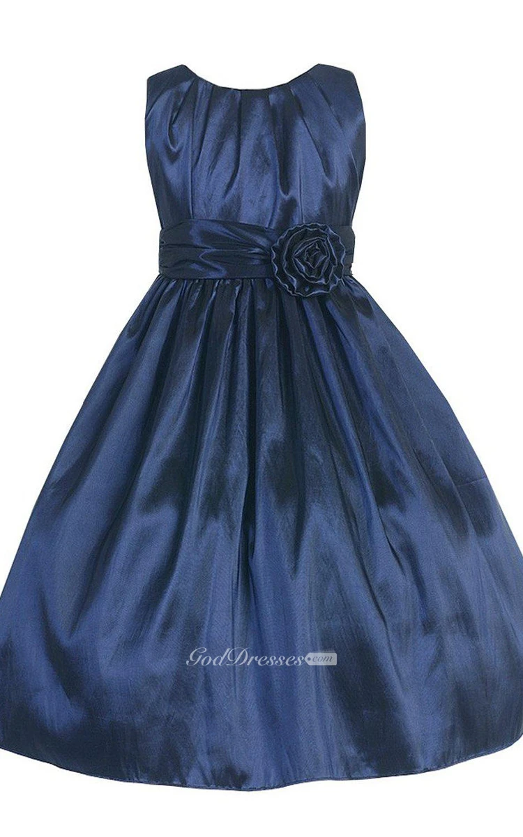 Sleeveless A-line Taffeta Dress With Pleats and Flower