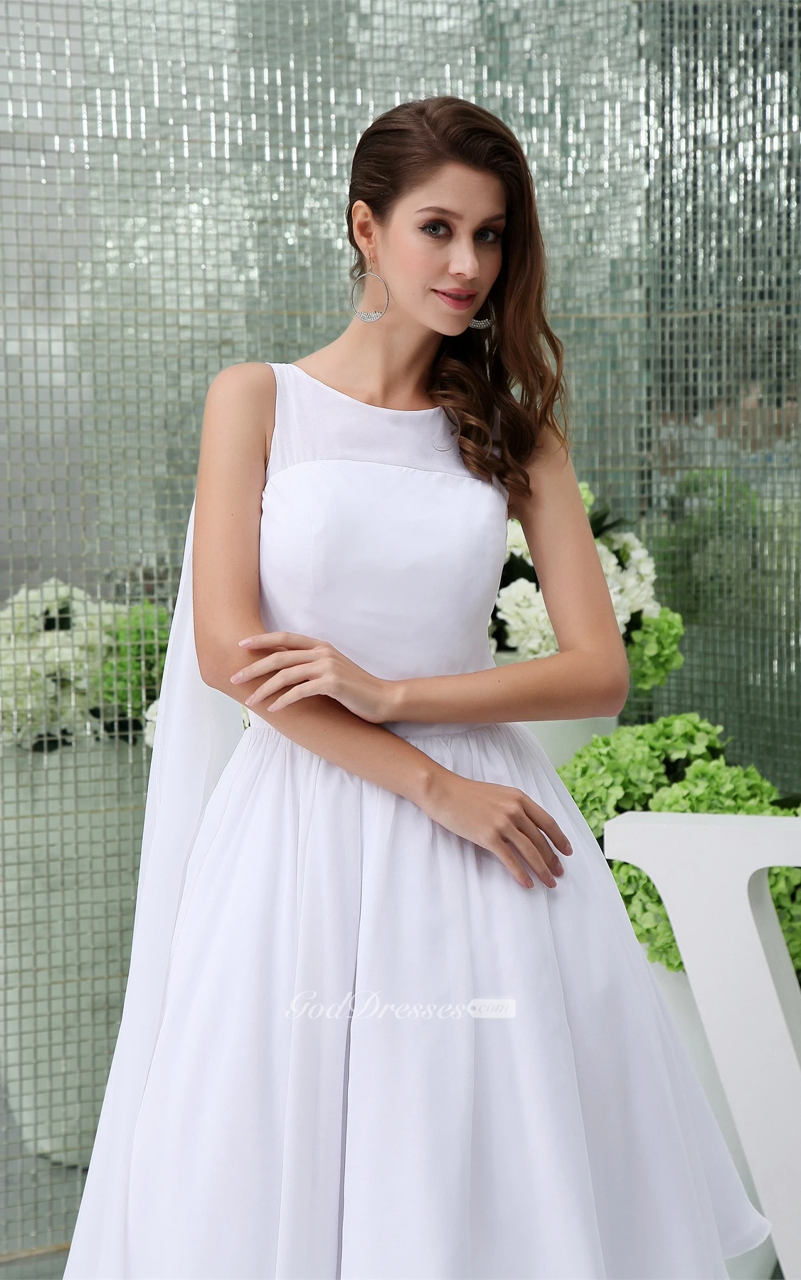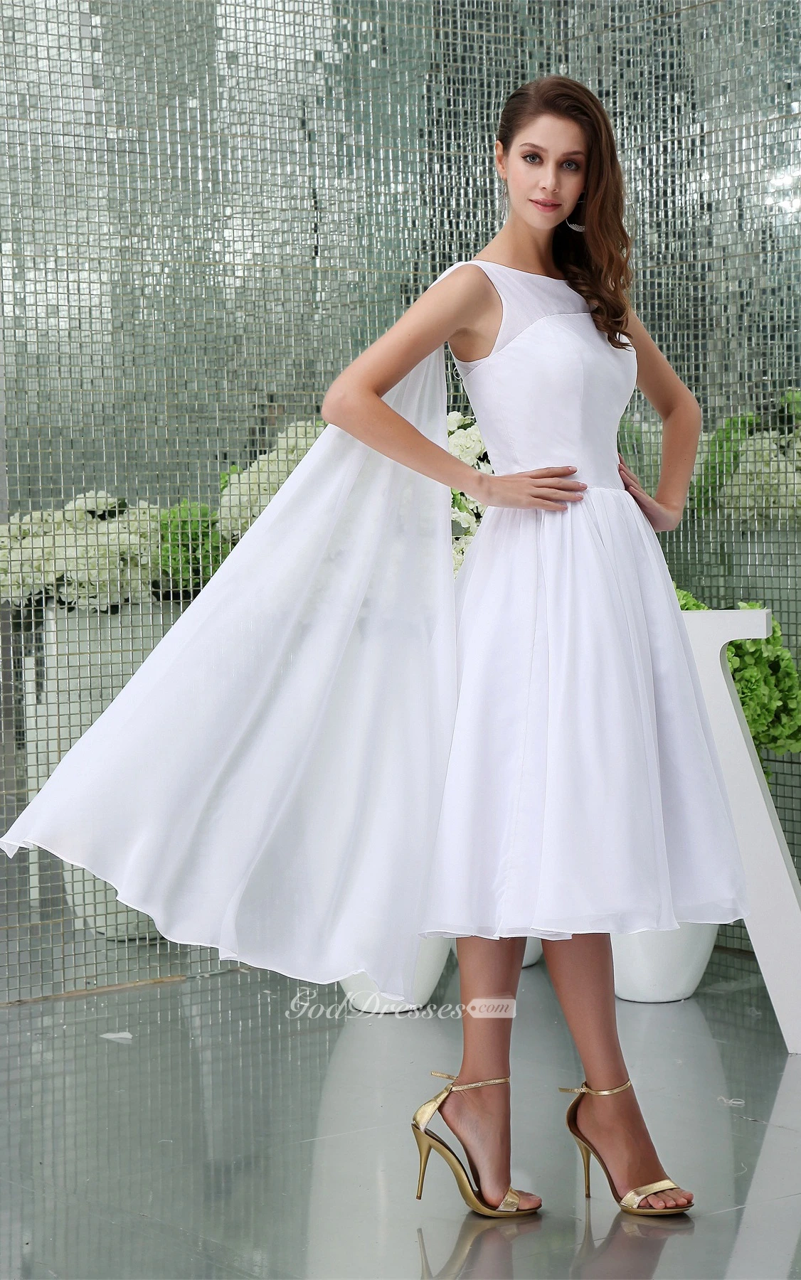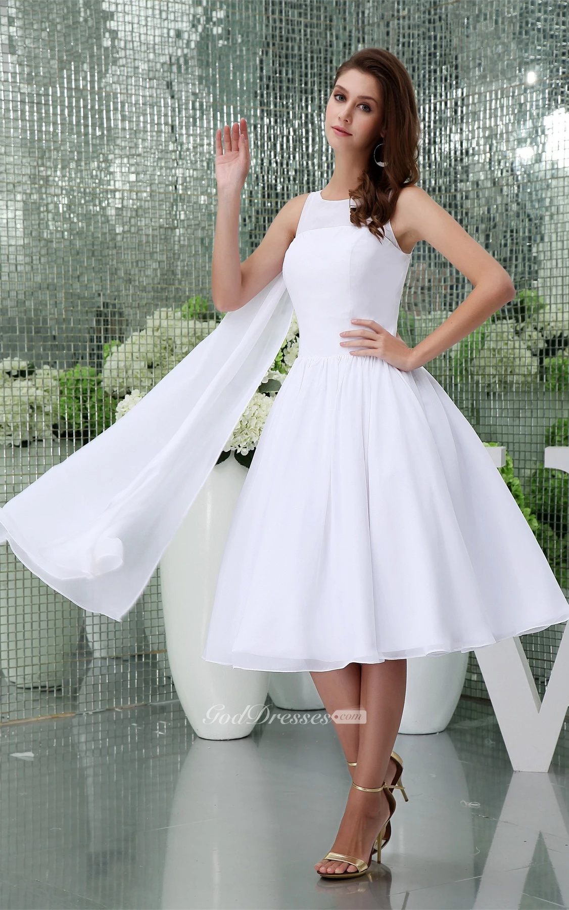 Sleeveless A-Line Tea-Length Chiffon Dress With Pleats