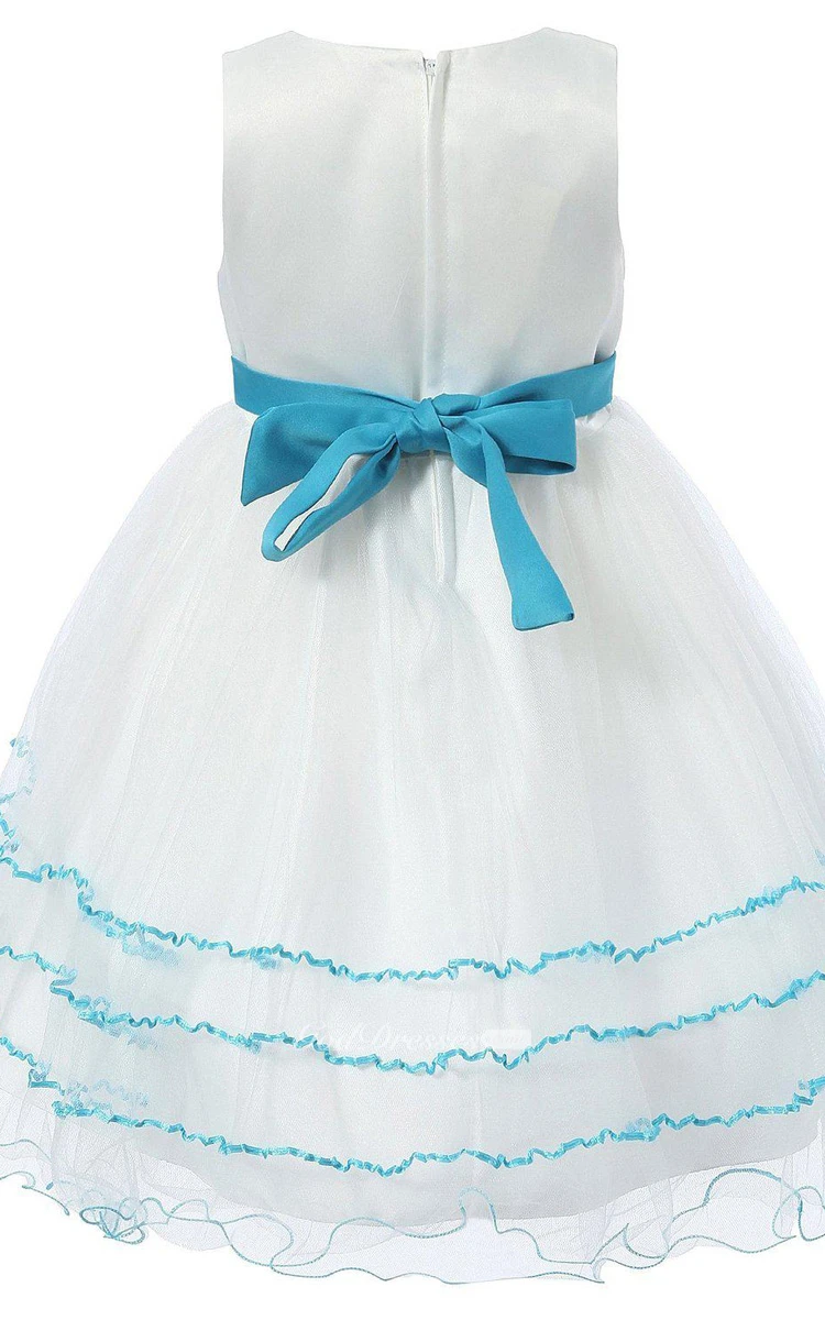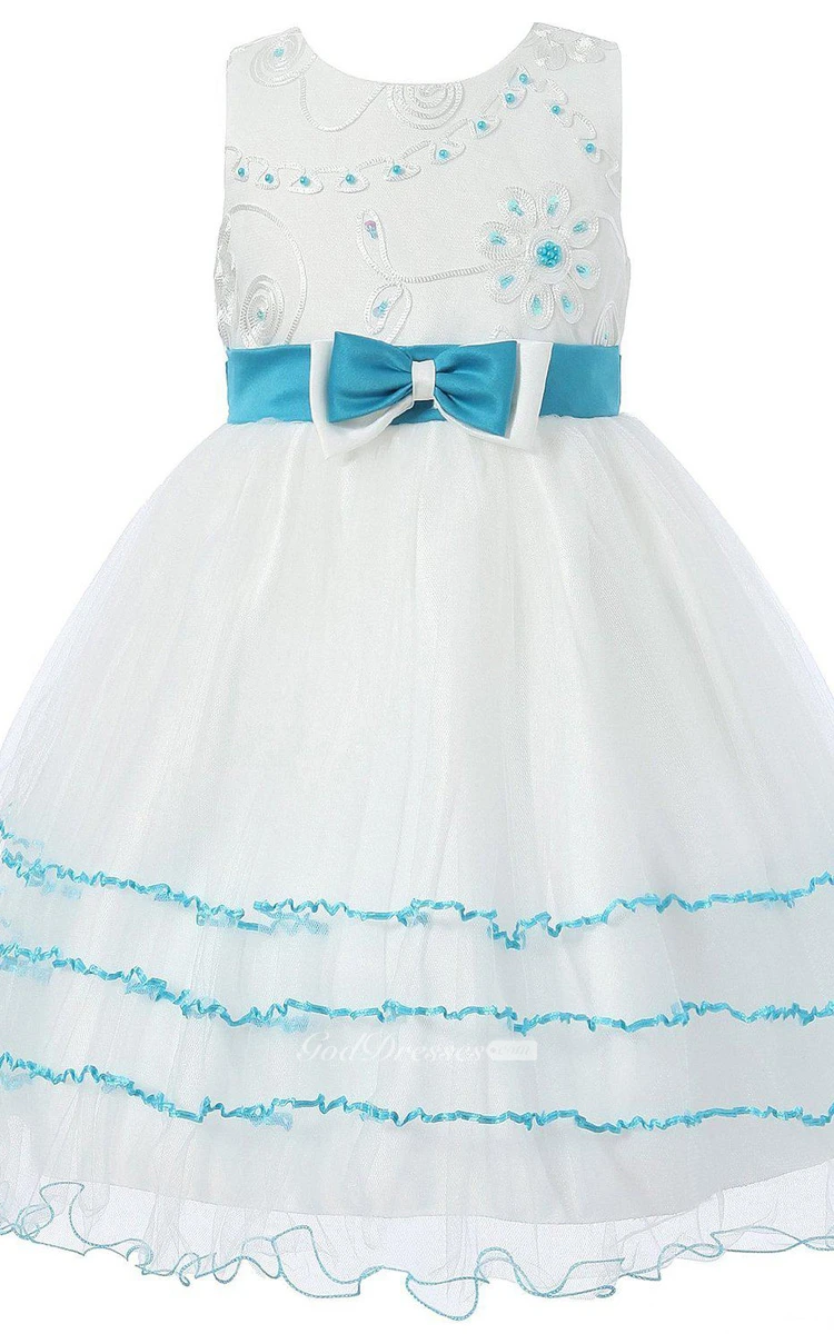 Sleeveless A-line Tulle Dress With Beadings and Bow