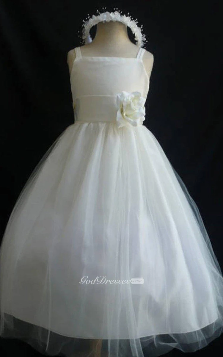 Sleeveless A-line Tulle Dress With Flower and Straps