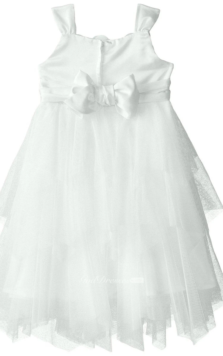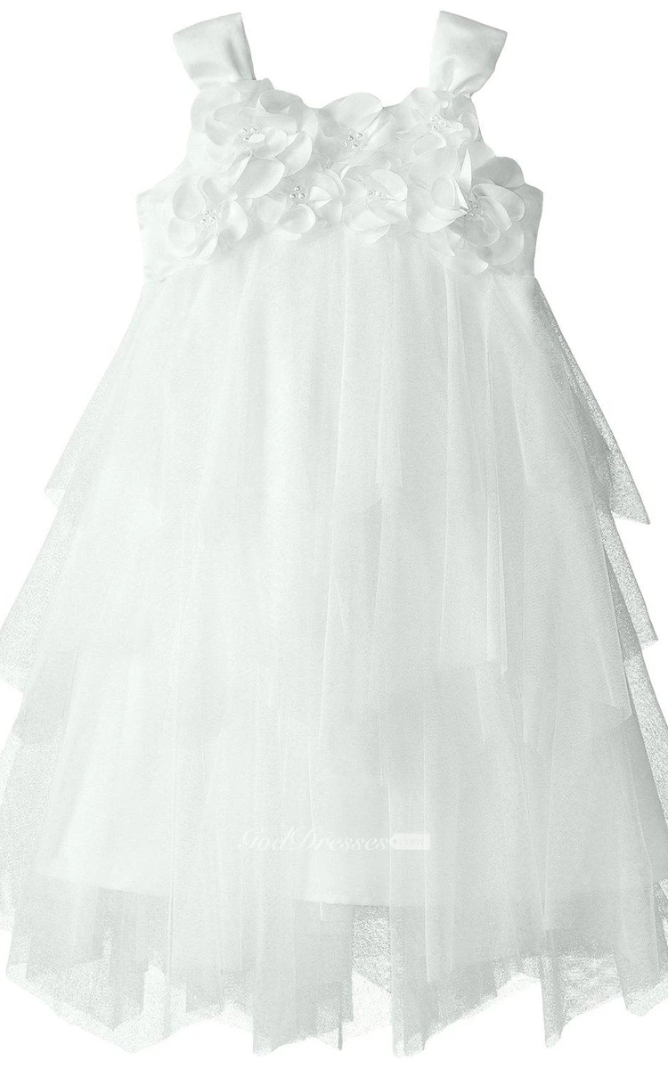 Sleeveless A-line Tulle Dress With Flowers and Bow