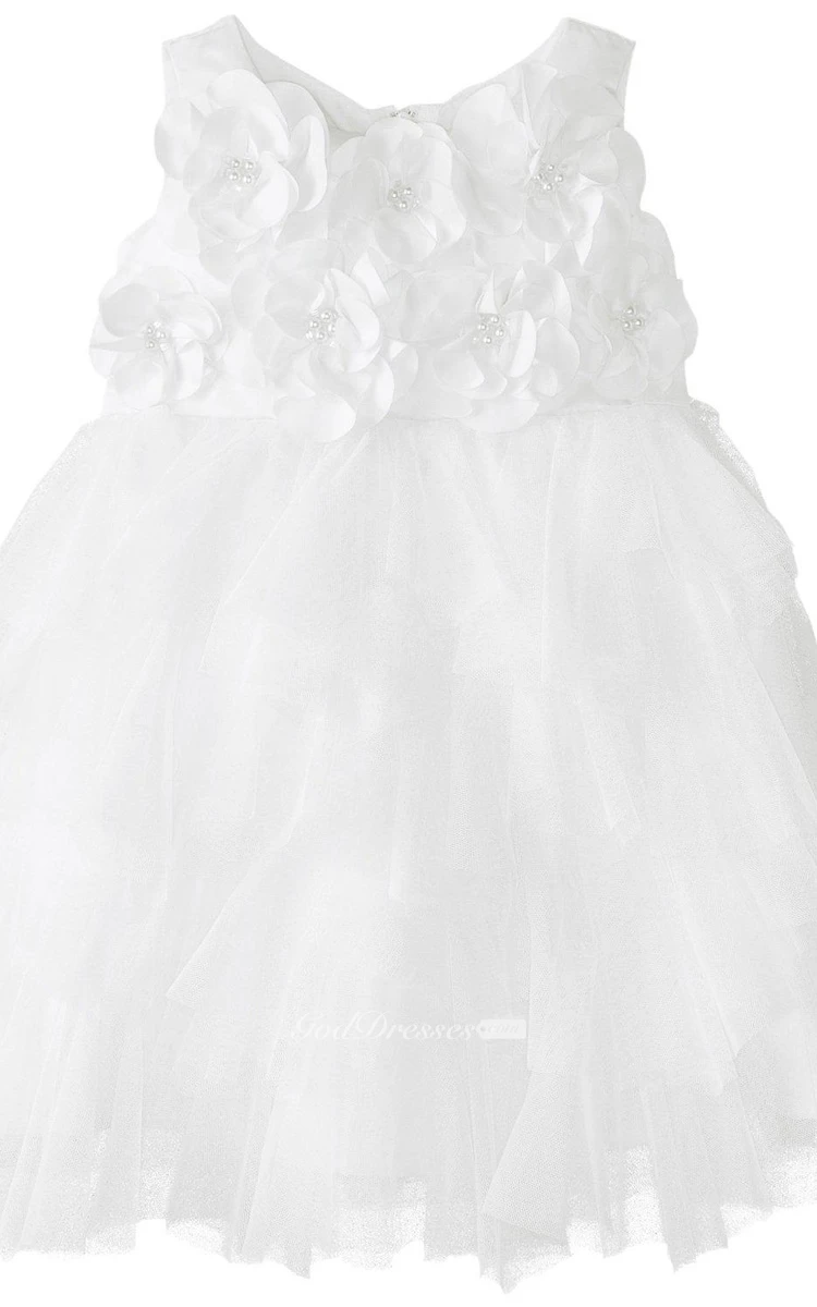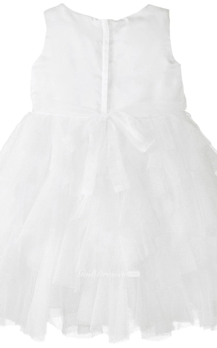 Sleeveless A-line Tulle Dress With Flowers and Bow