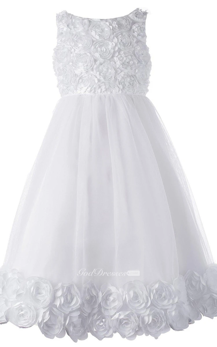 Sleeveless A-line Tulle Dress With Flowers and Pleat
