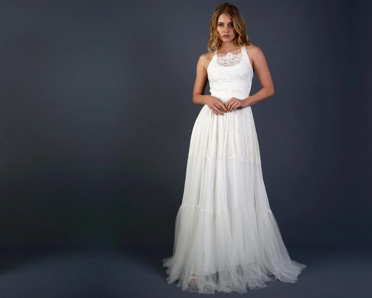 Sleeveless A-Line Tulle Dress With Lace Top and Back Straps