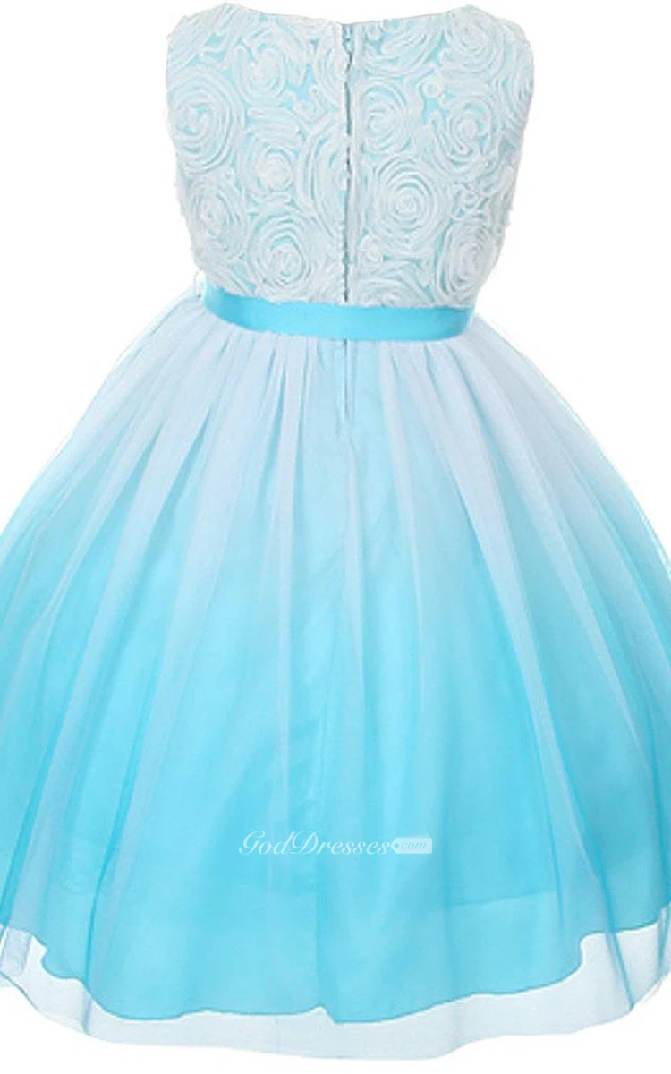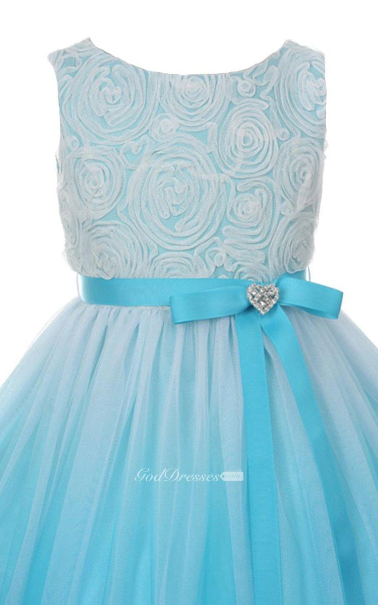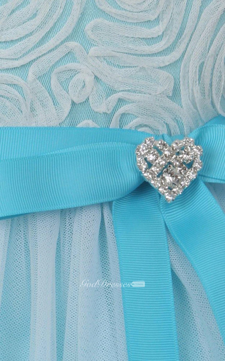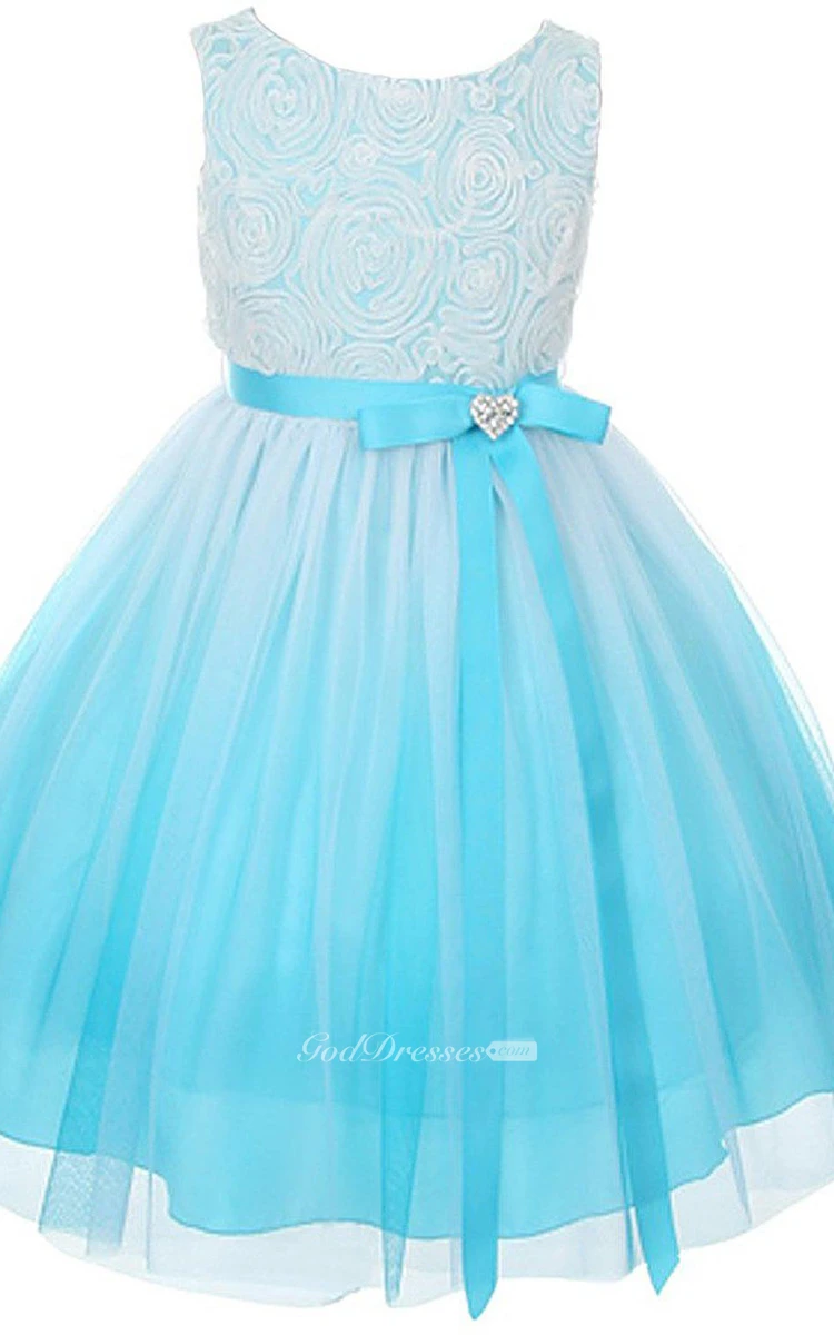 Sleeveless A-line Tulle Dress With Pleats and Bow