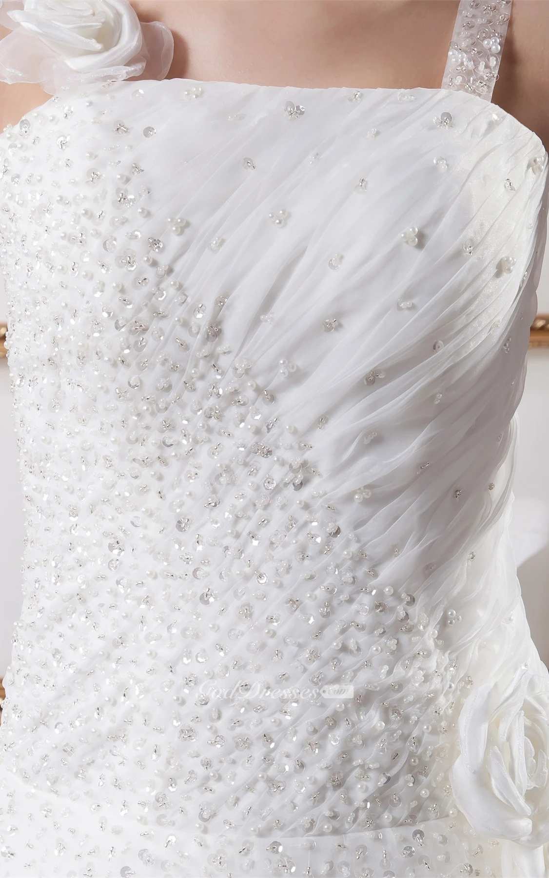 Sleeveless A-Line Tulle Gemmed Top and Gown With Flower