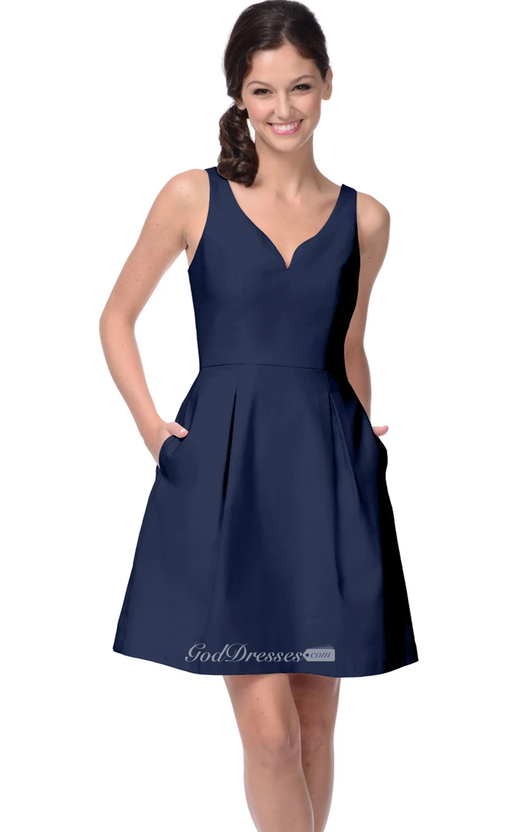 Sleeveless A-Line V-Neck Dress With Zipper Back