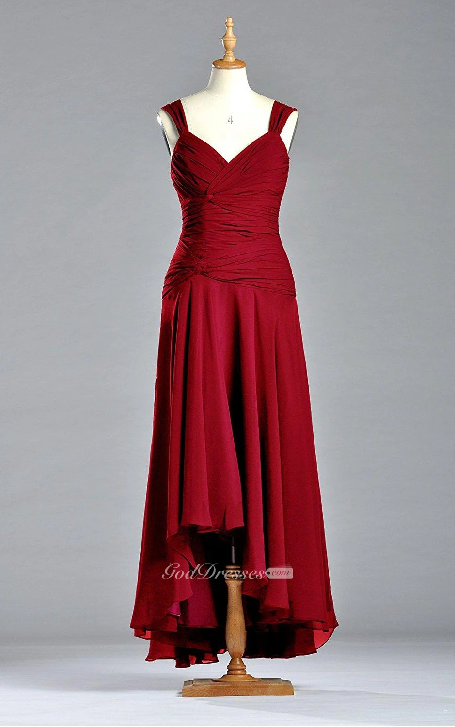 Sleeveless A-line V-neck Tea-length Chiffon Dress