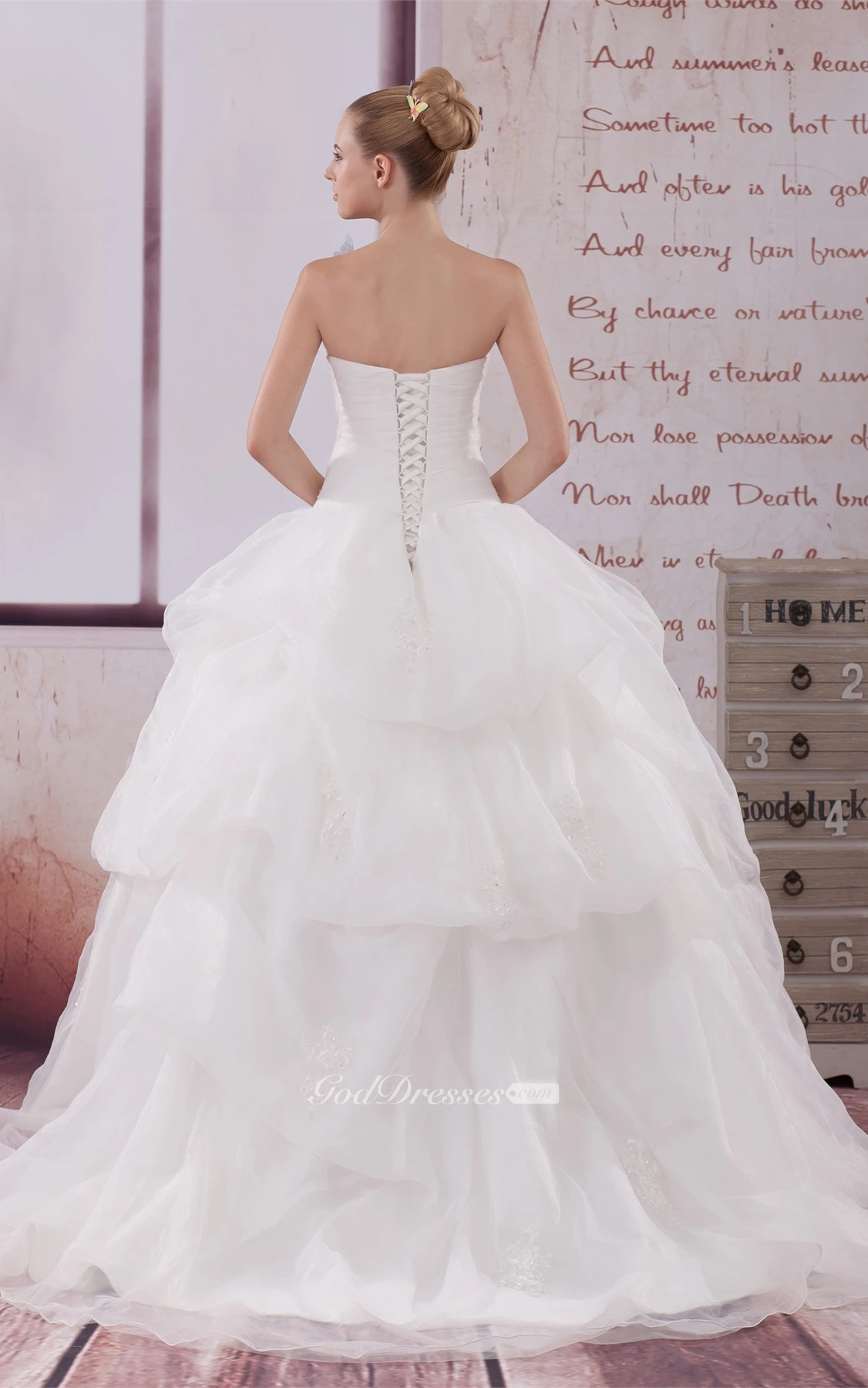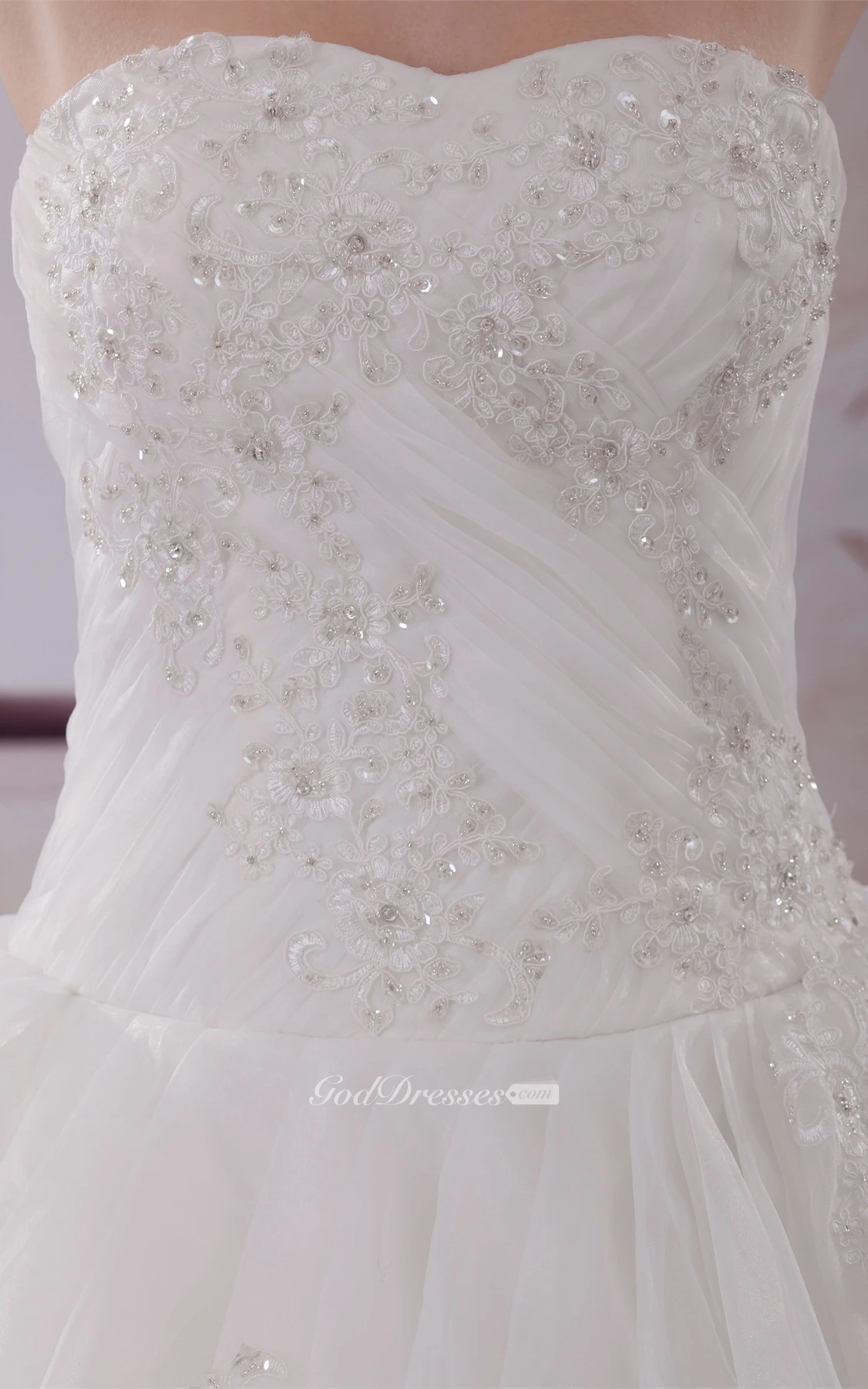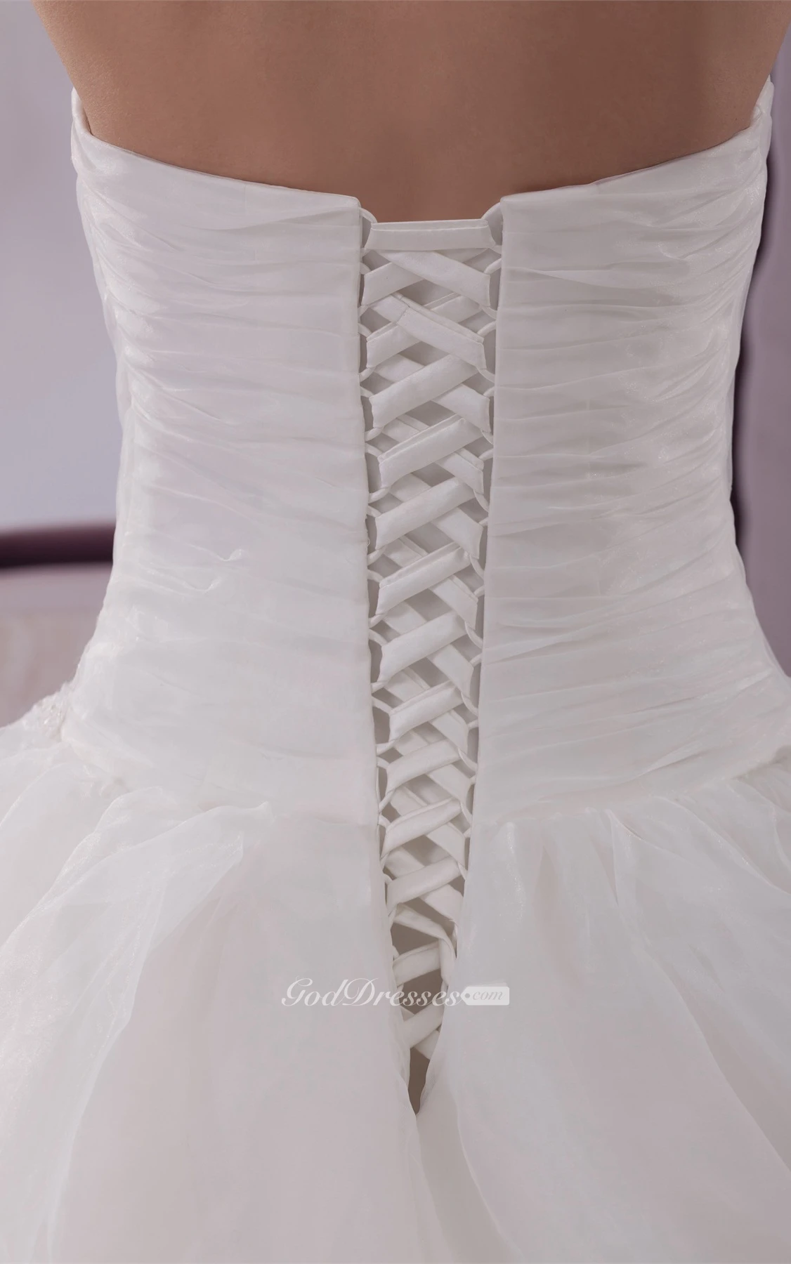 Sleeveless Appliqued Corset Back and Ball-Gown With Ruching
