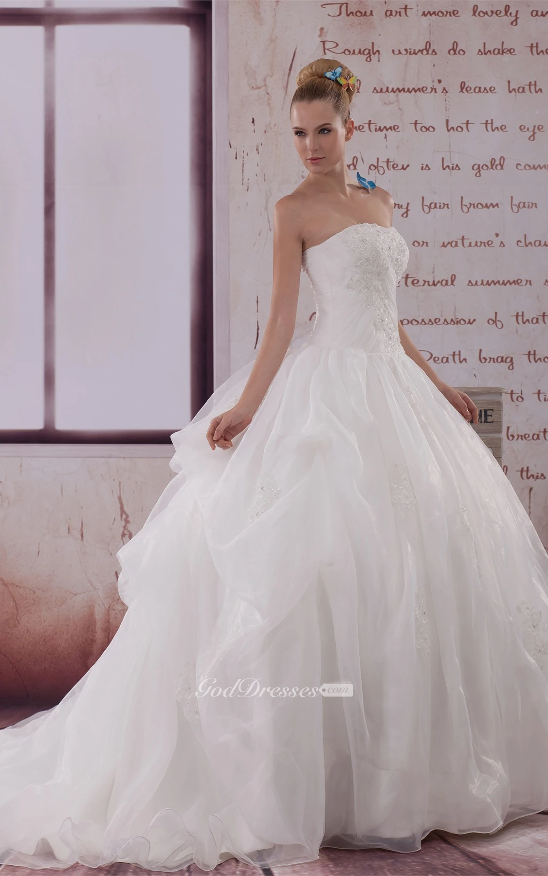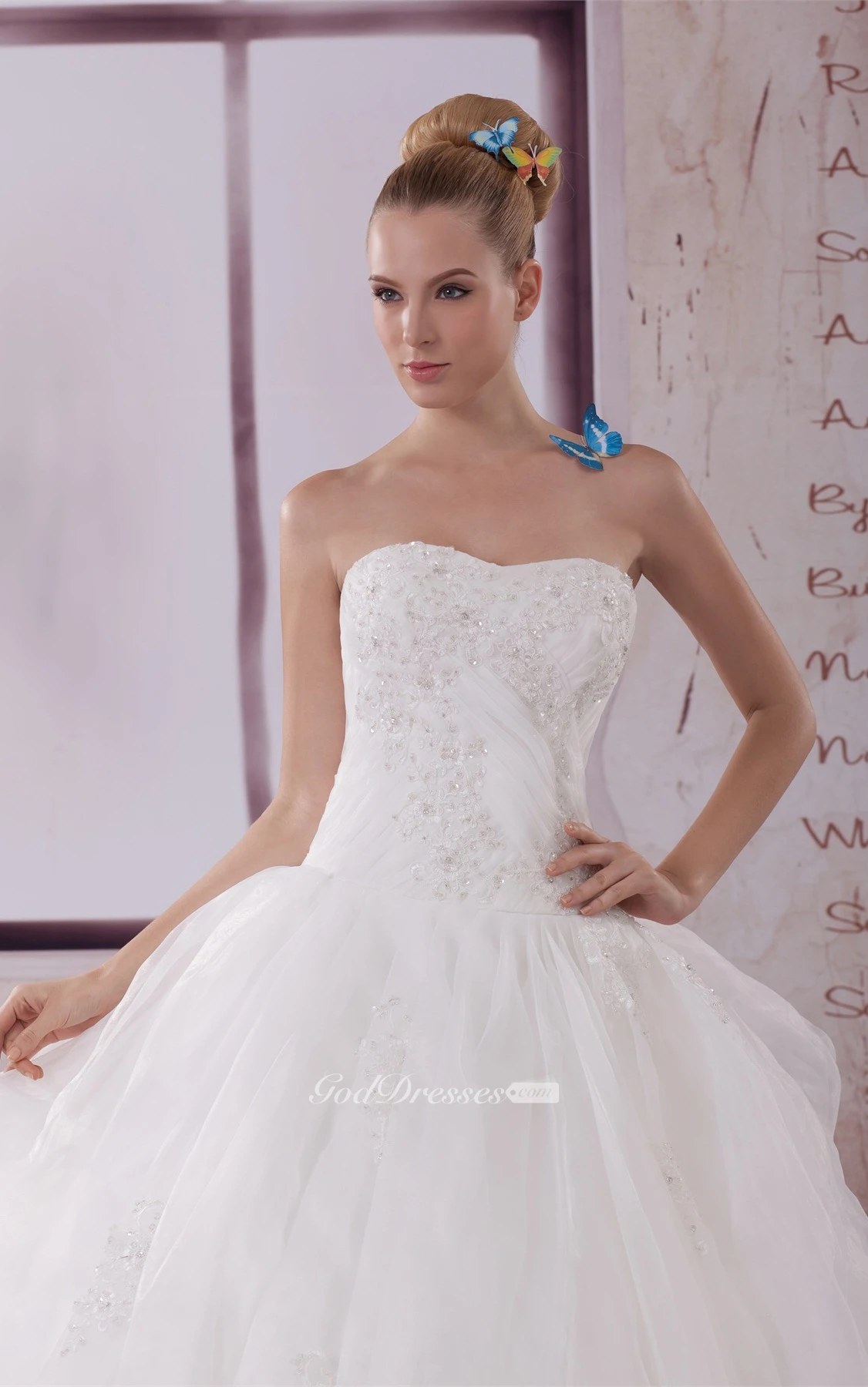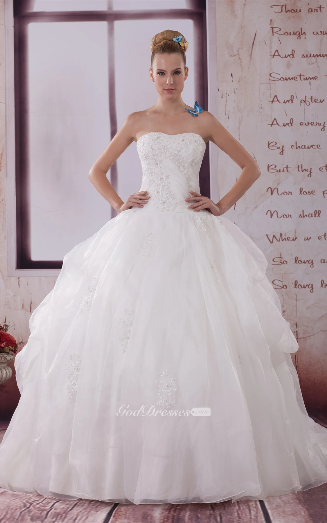 Sleeveless Appliqued Corset Back and Ball-Gown With Ruching