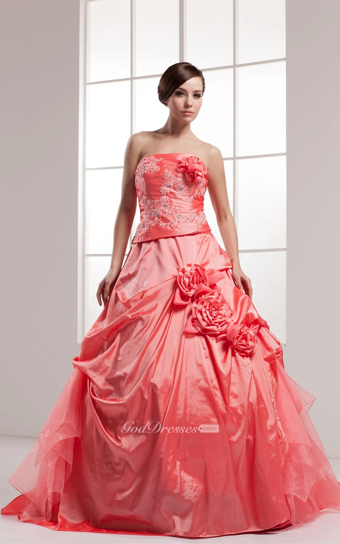 Sleeveless Appliqued Pick-Up Beading and Ball-Gown With Flower