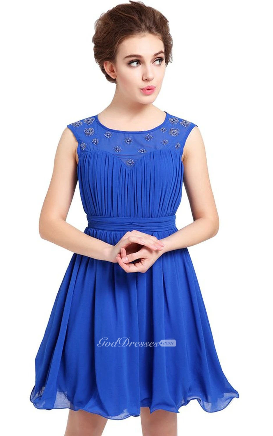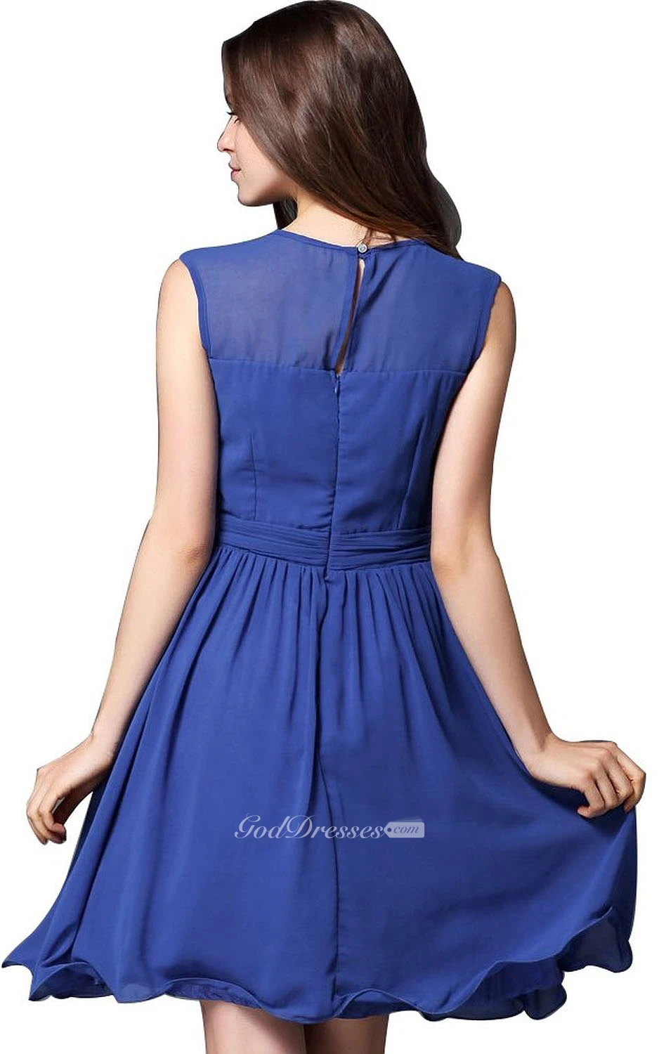 Sleeveless Appliqued Pleated Bodice Short Ruffled Chiffon Dress