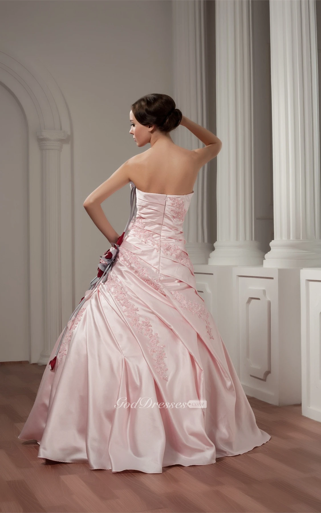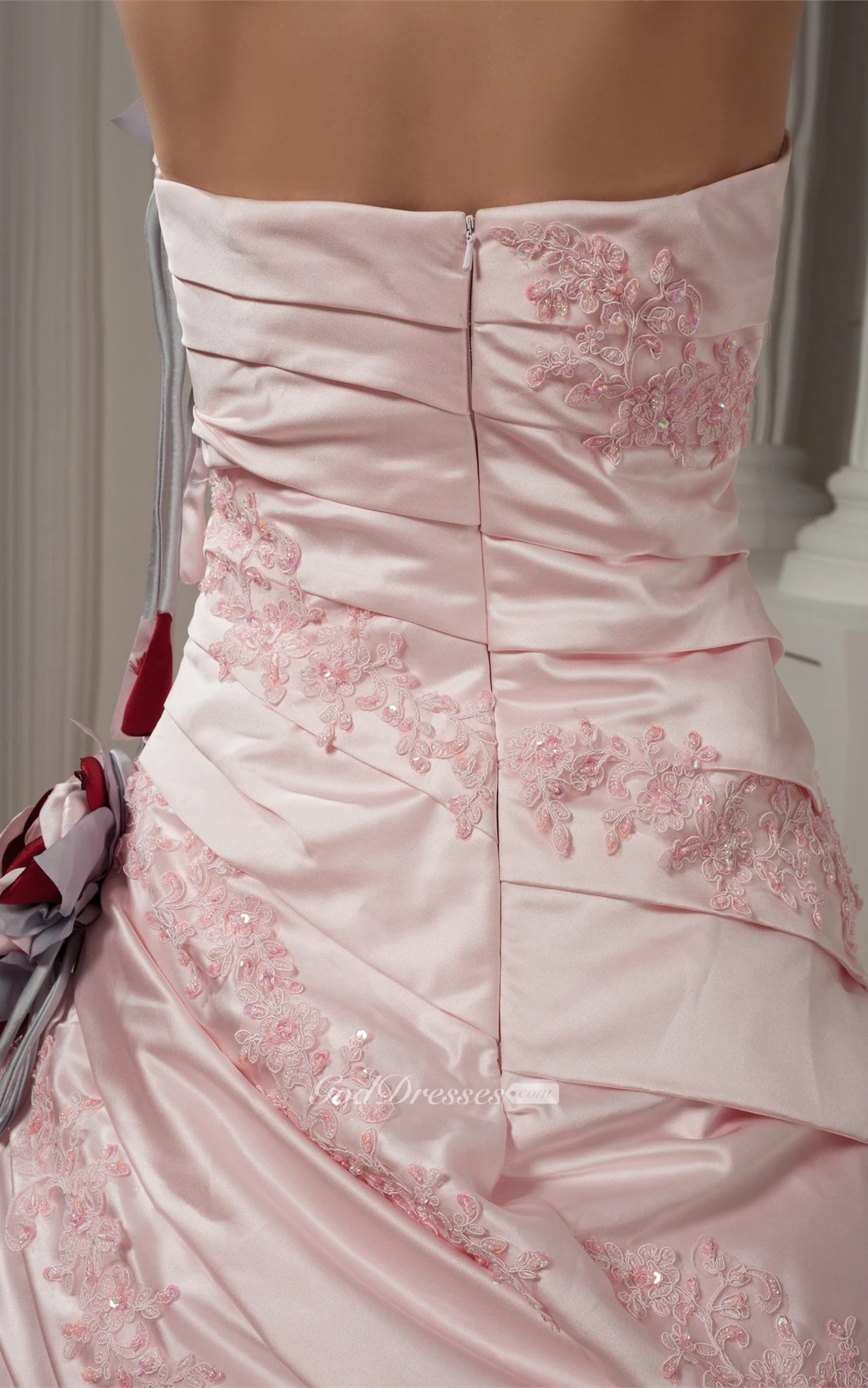 Sleeveless Appliqued Side Ruching and Ball-Gown With Flower