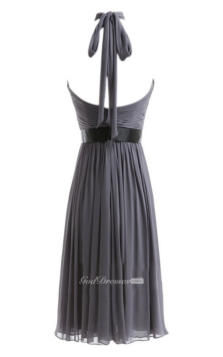 Sleeveless Asymmetrical Chiffon Dress With Keyhole
