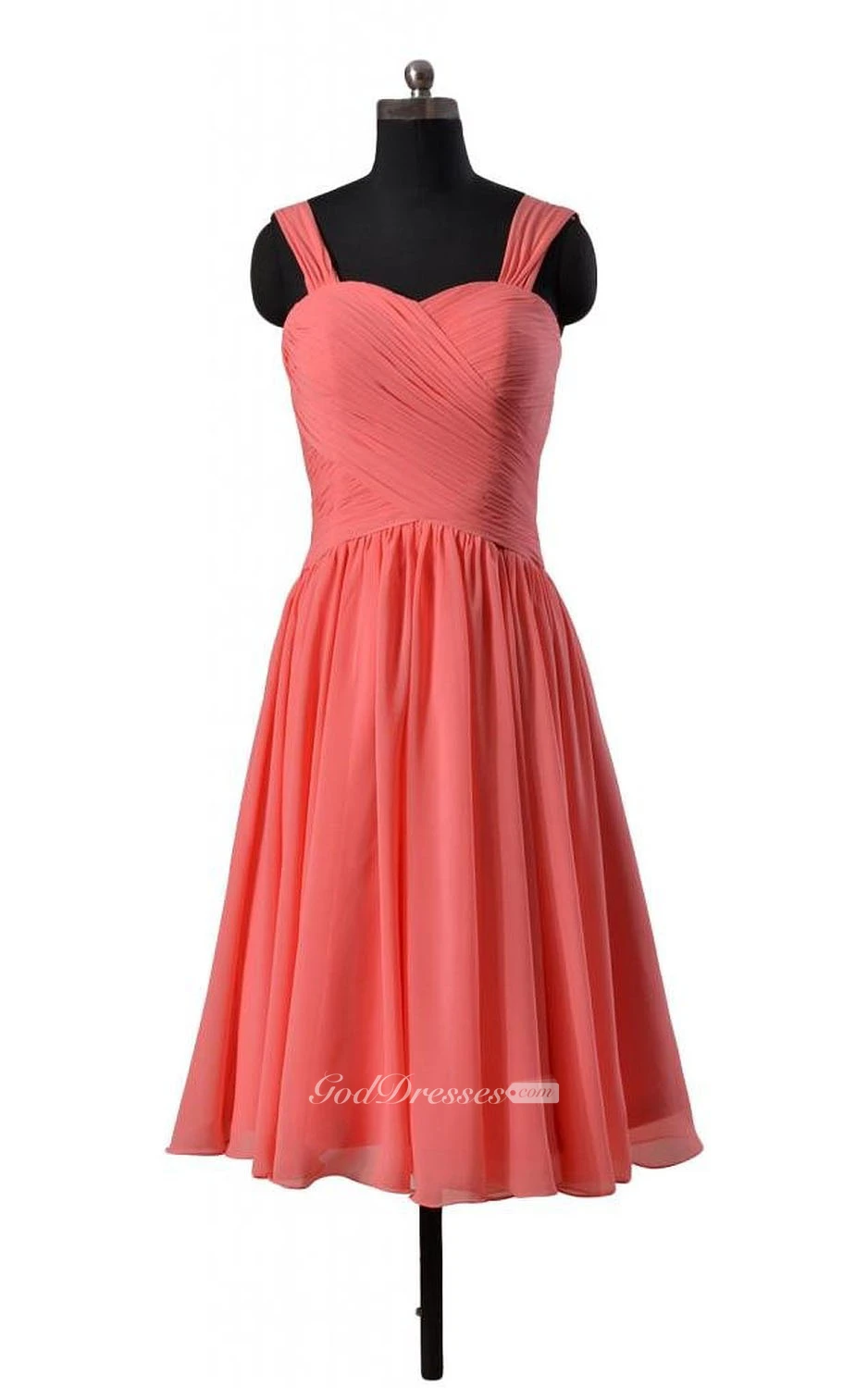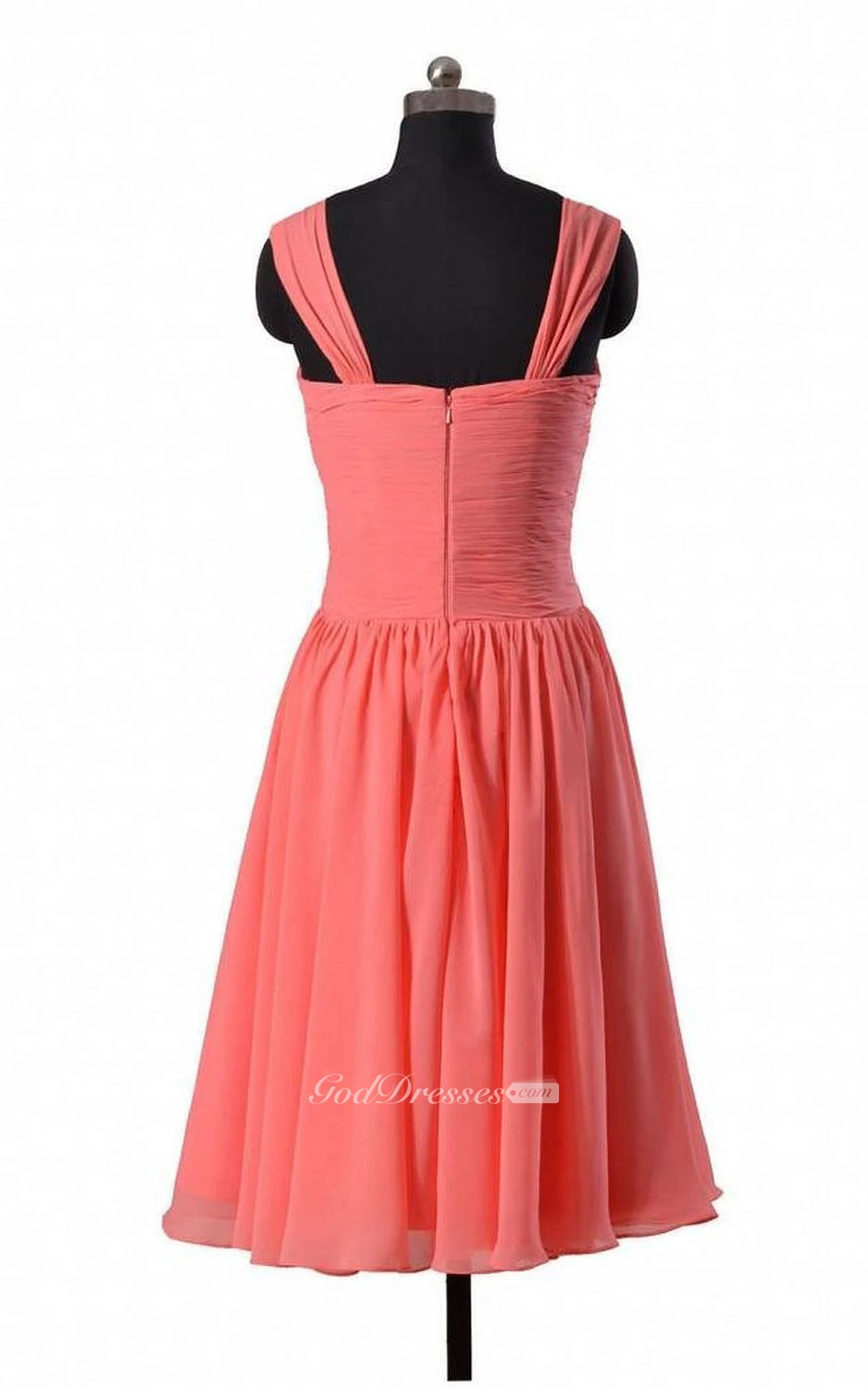 Sleeveless Asymmetrical Ruched Bodice Knee-length Pleated Chiffon Dress