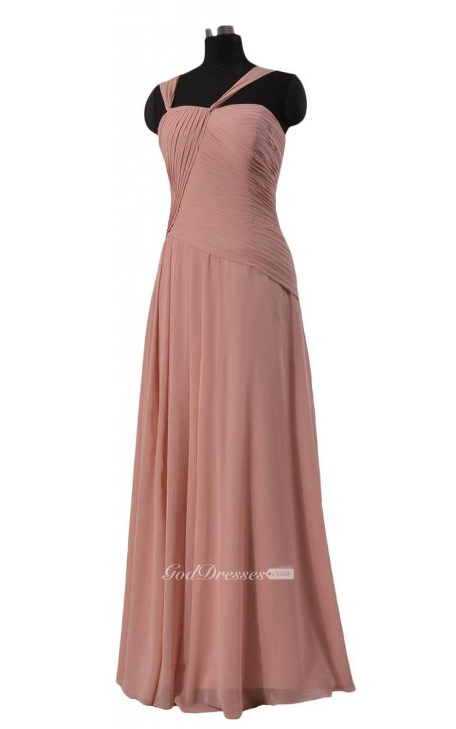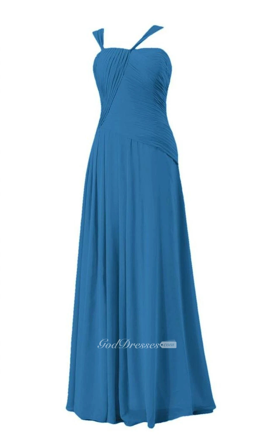 Sleeveless Asymmetrical Ruched Bodice Long Pleated Chiffon Dress