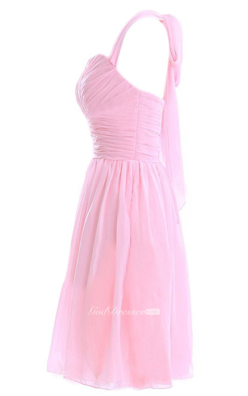 Sleeveless Asymmetrical Ruched Knee-length Pleated Chiffon Dress