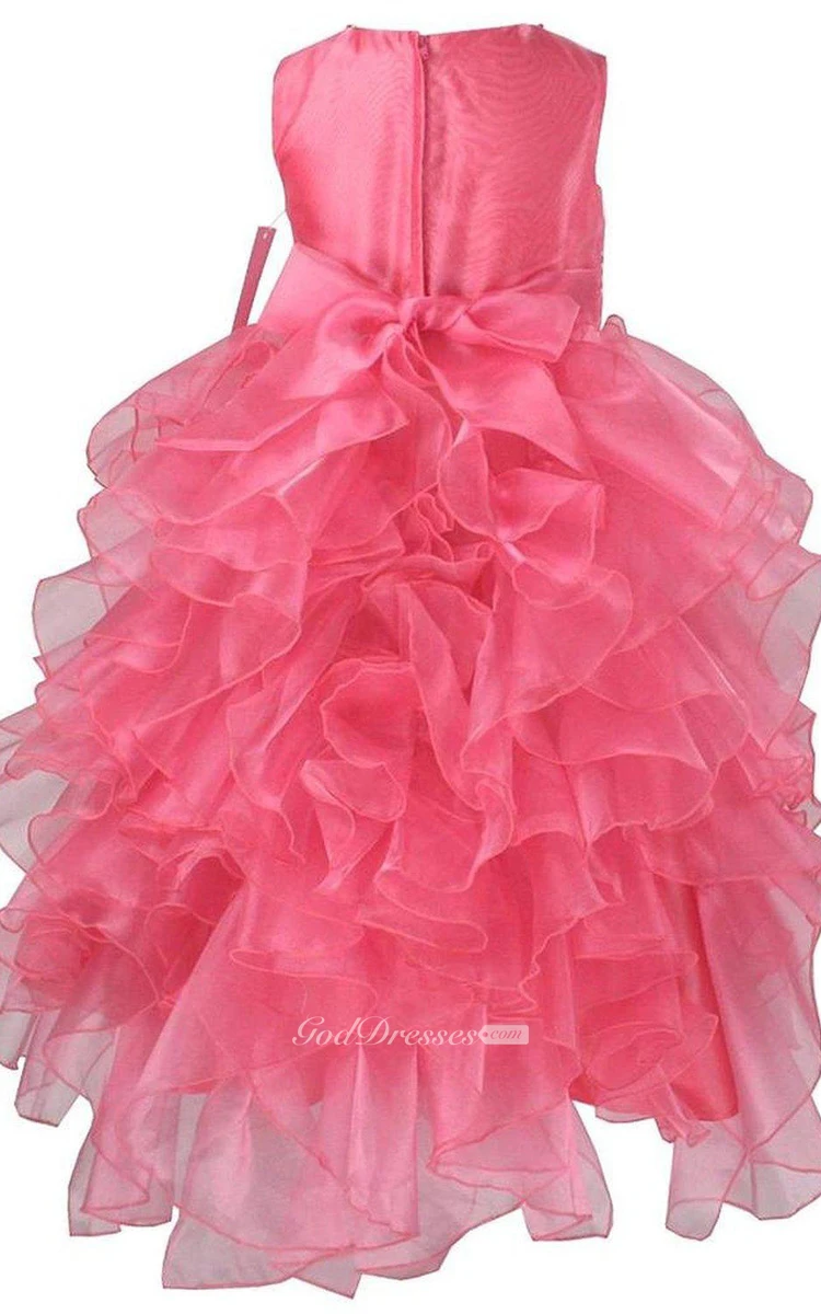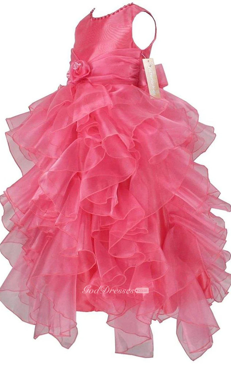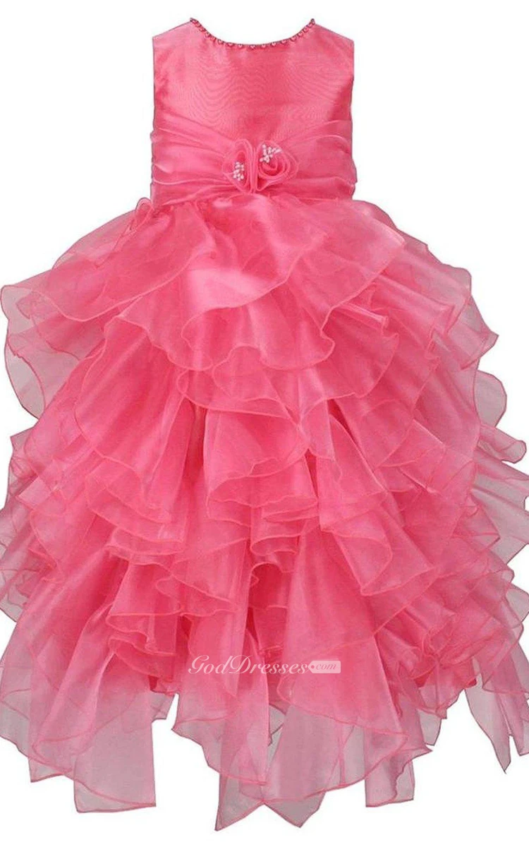 Sleeveless Asymmetrically Ruffled Dress With Beadings