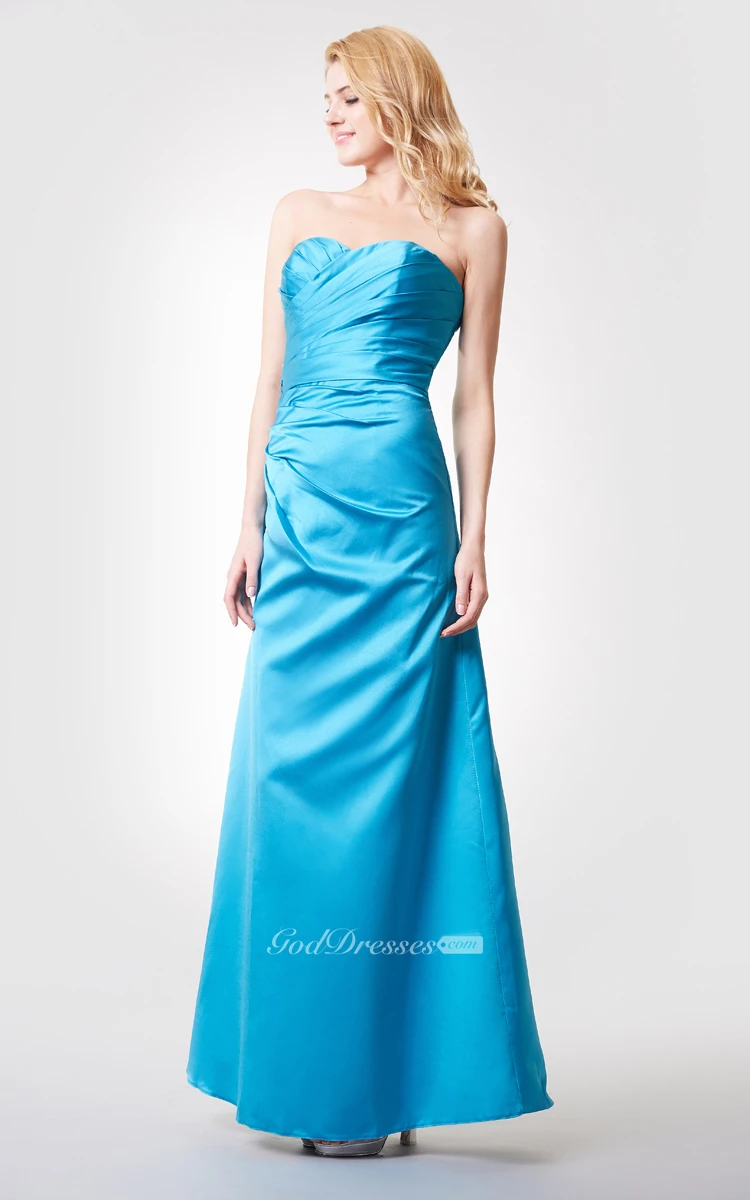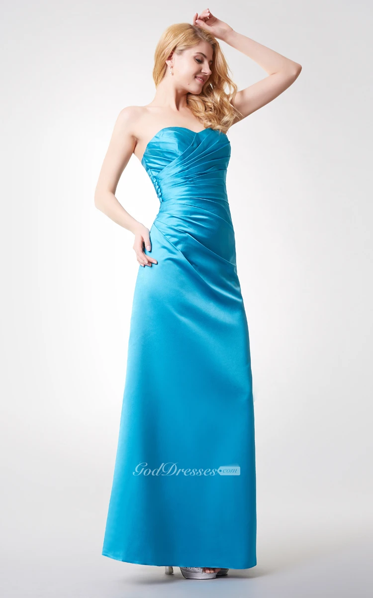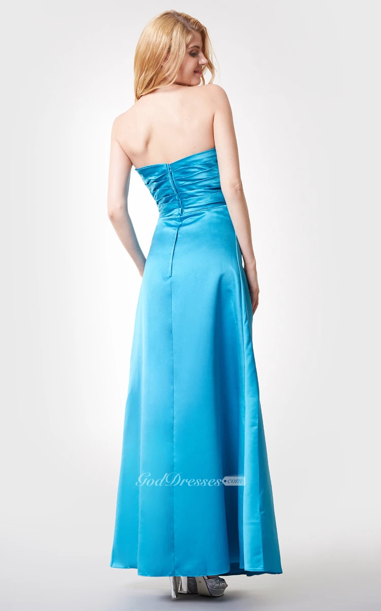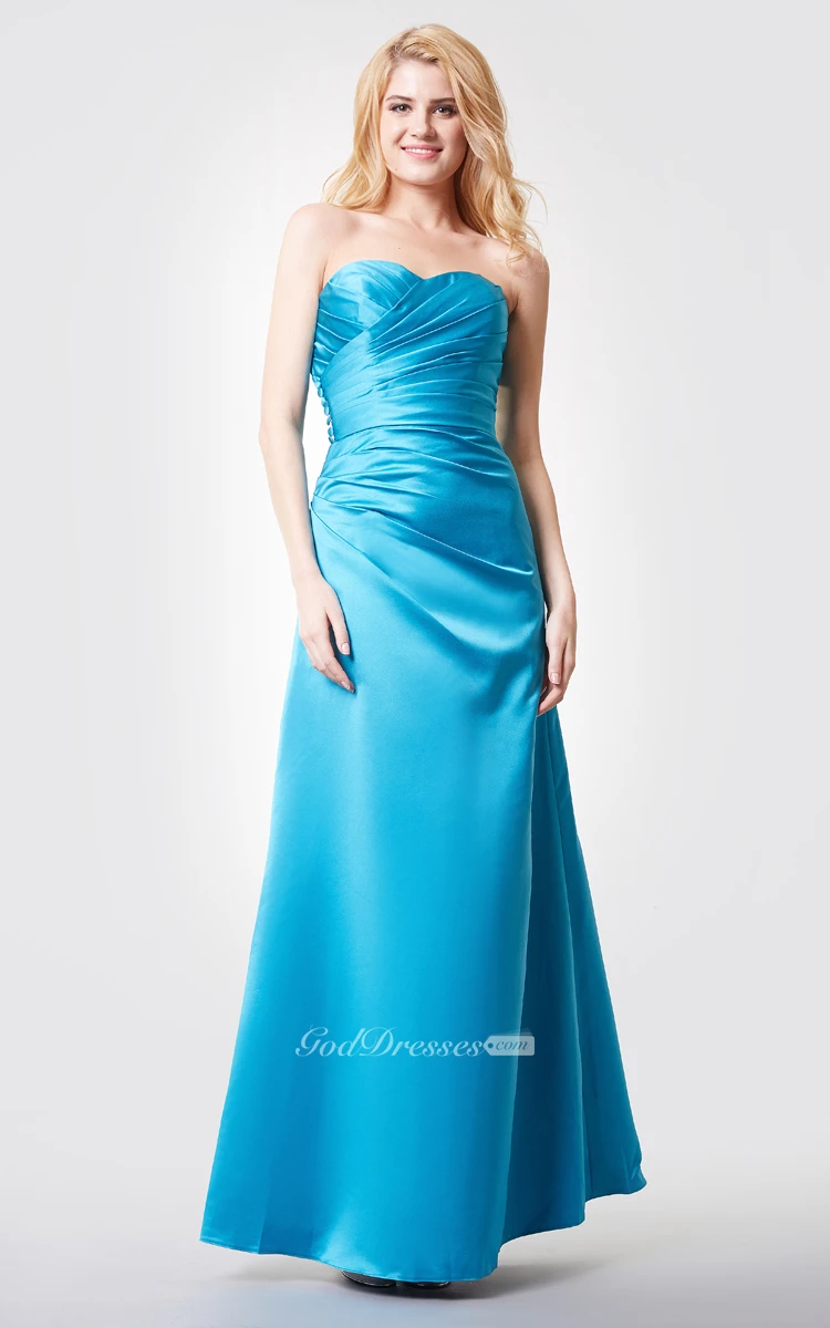 Sleeveless Backless A-line Ruched Long Satin Dress