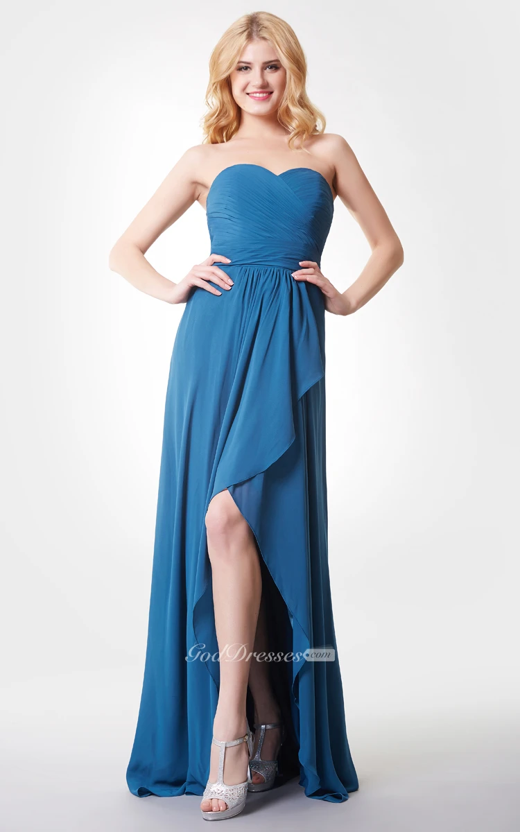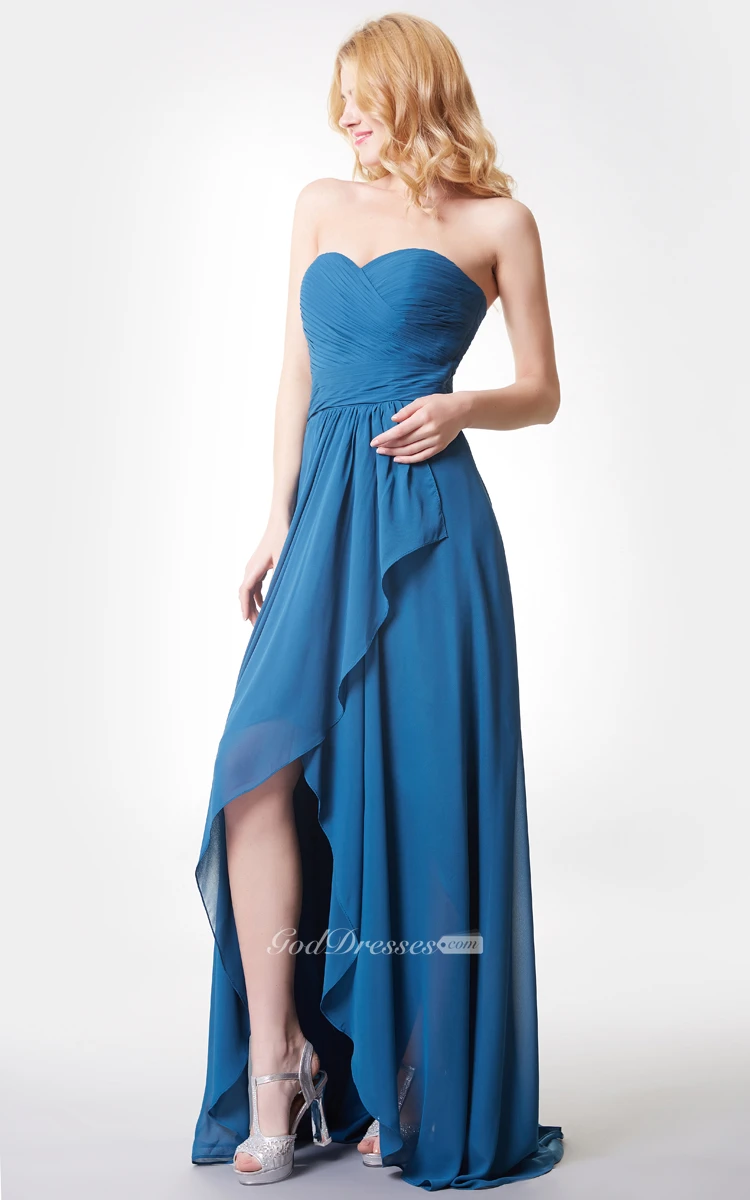 Sleeveless Backless Ruched High-low Chiffon Dress