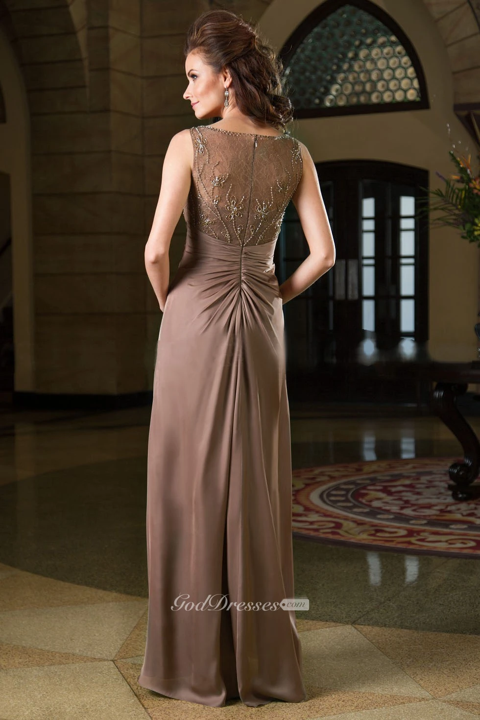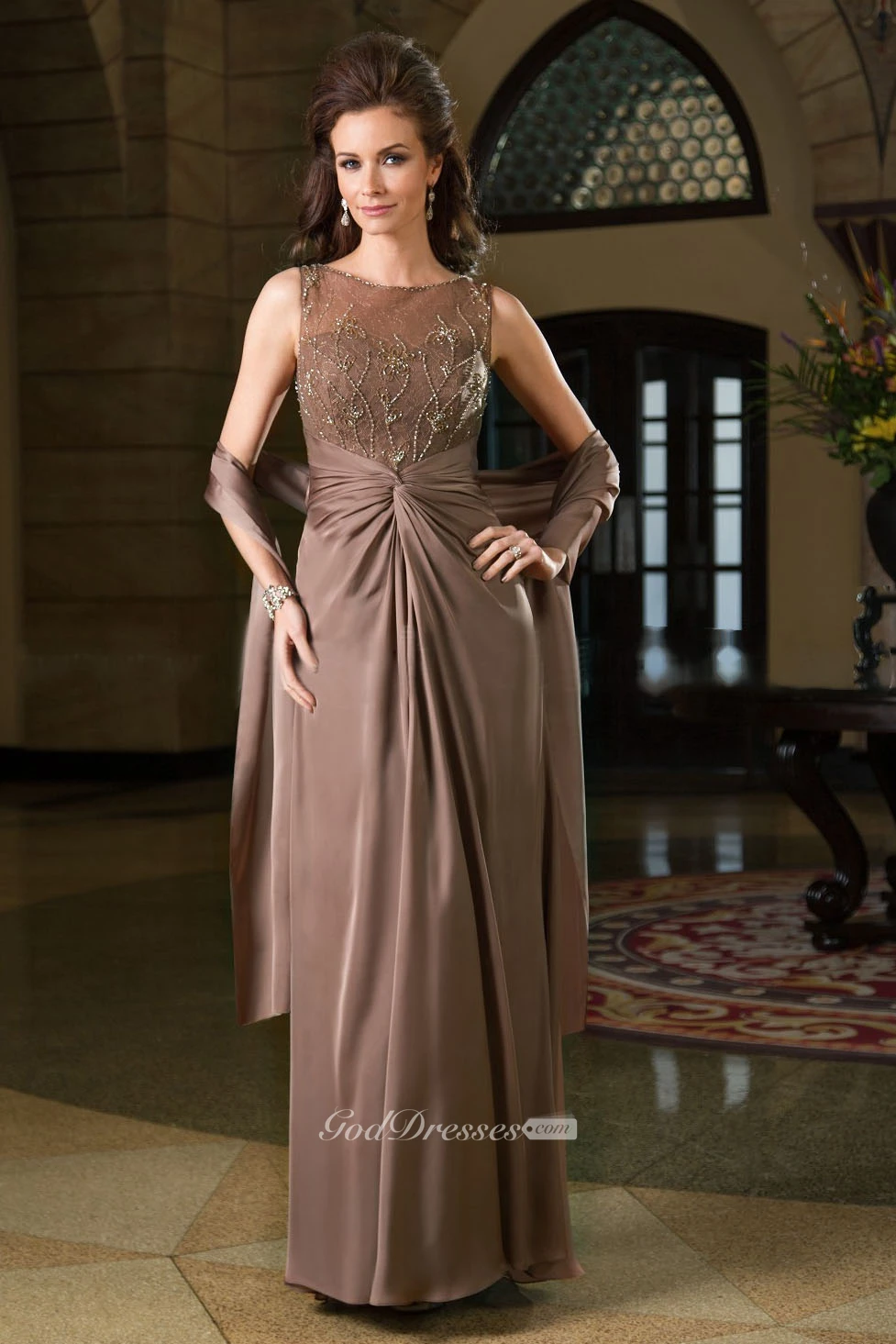 Sleeveless Bateau-Neck Gown With Matching Shawl And Beadings