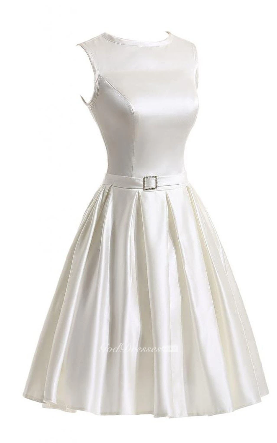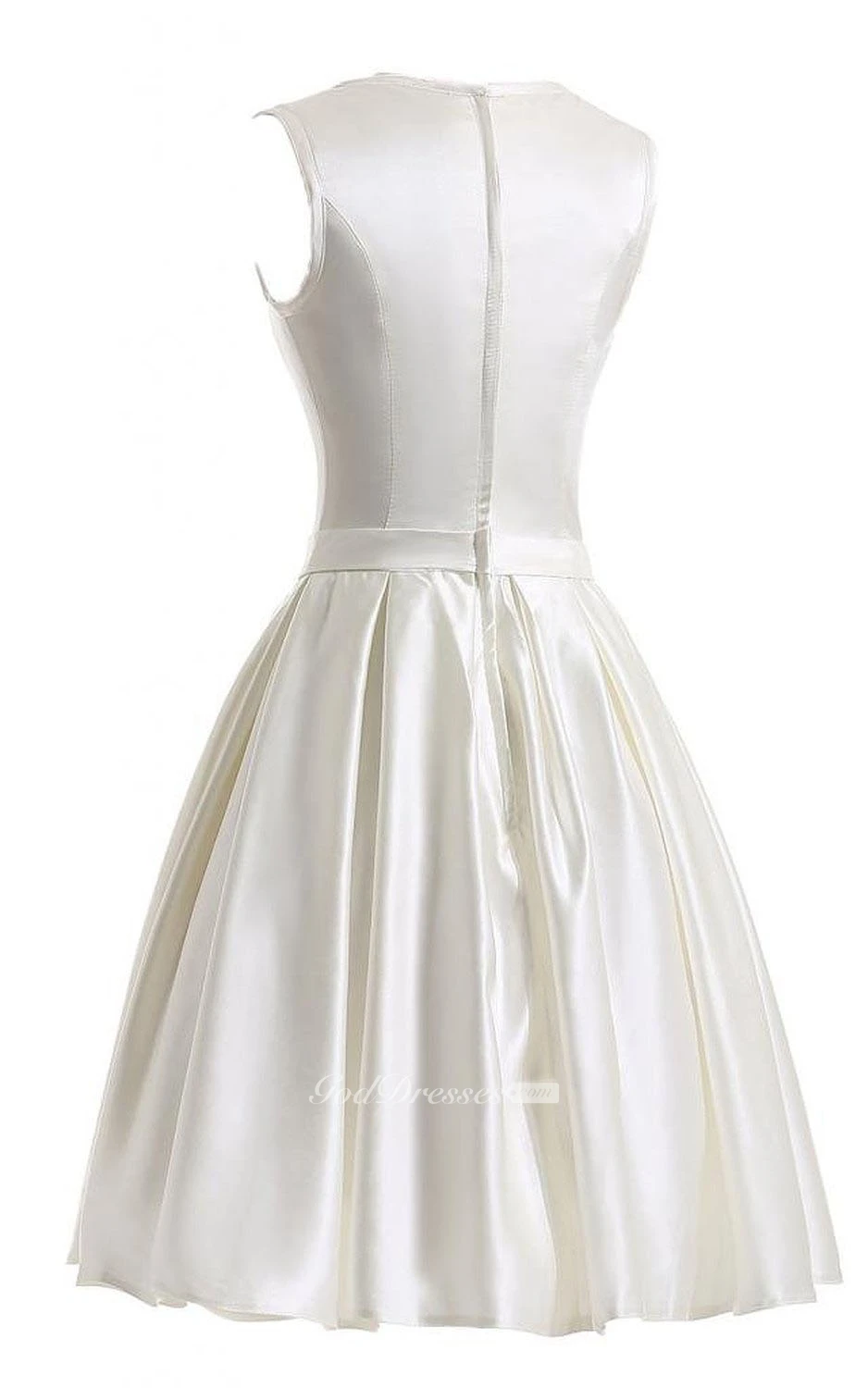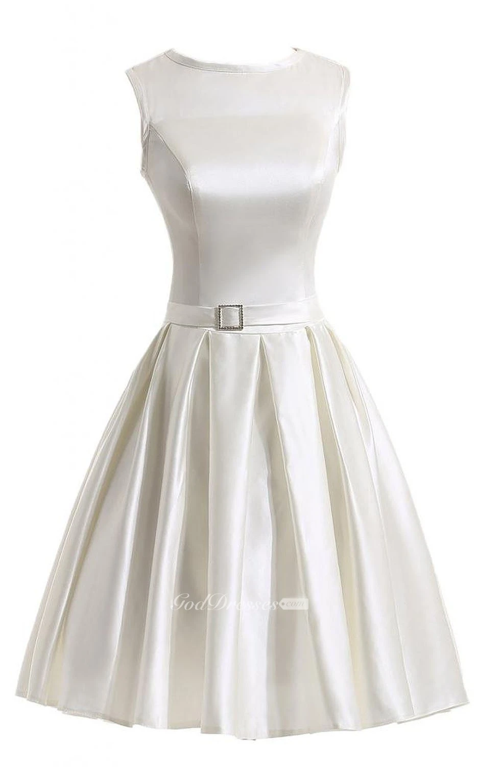 Sleeveless Bateau Neck Short Pleated Satin Dress