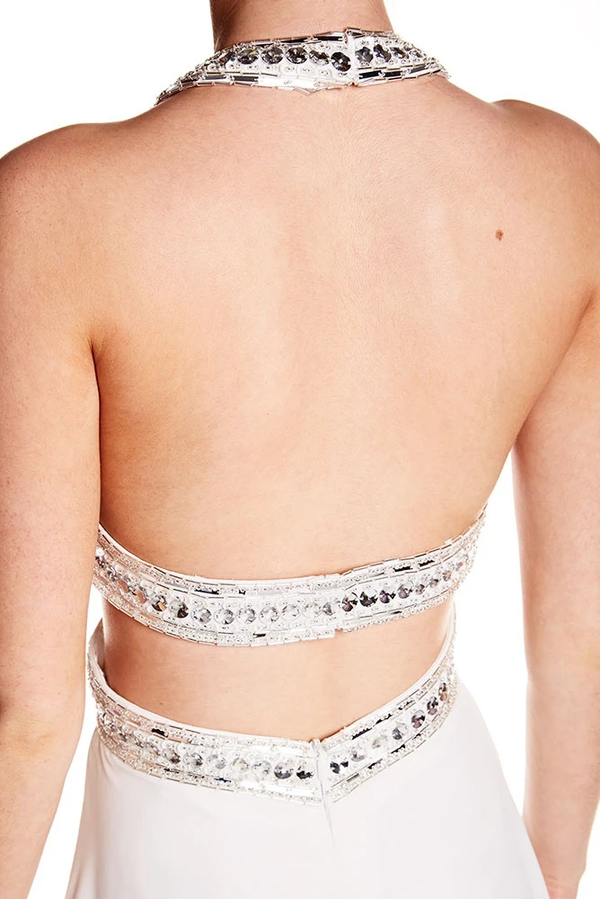 Sleeveless Beaded Halter Chiffon Prom Dress With Brush Train