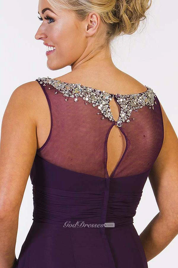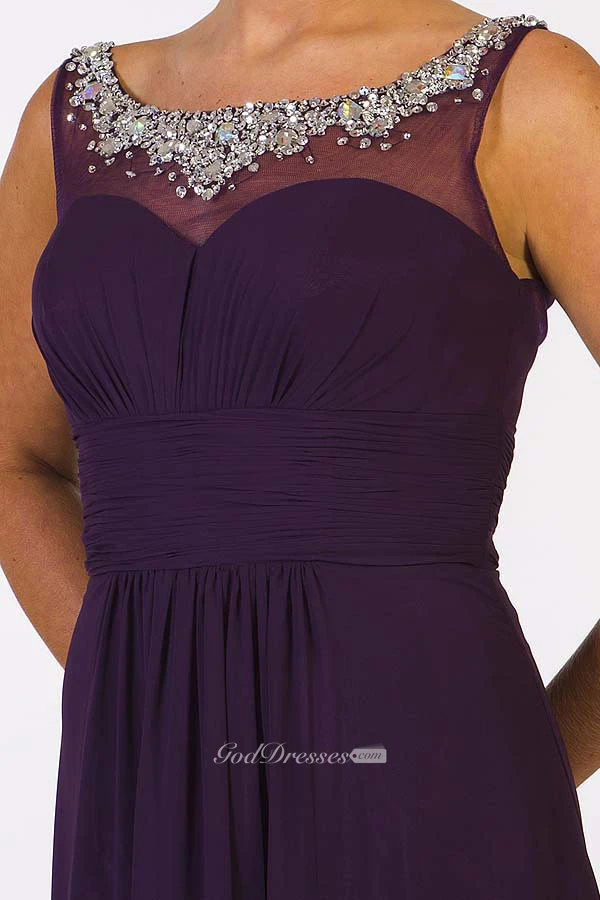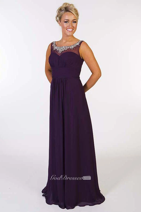 Sleeveless Beaded Scoop-Neck Floor-Length Chiffon Prom Dress