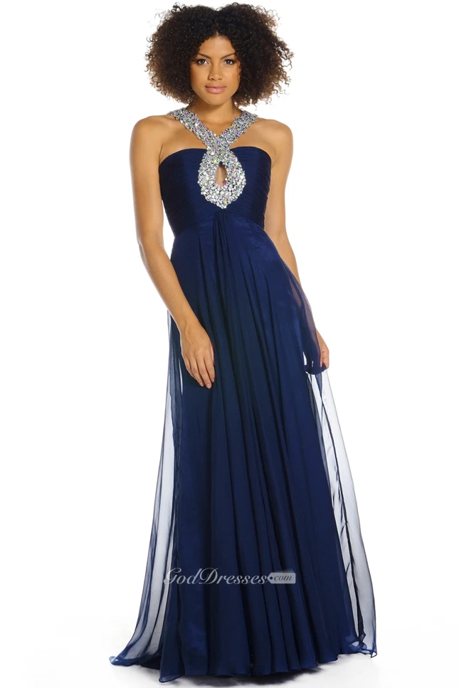 Sleeveless Beaded Strapped Chiffon Prom Dress With Ruching