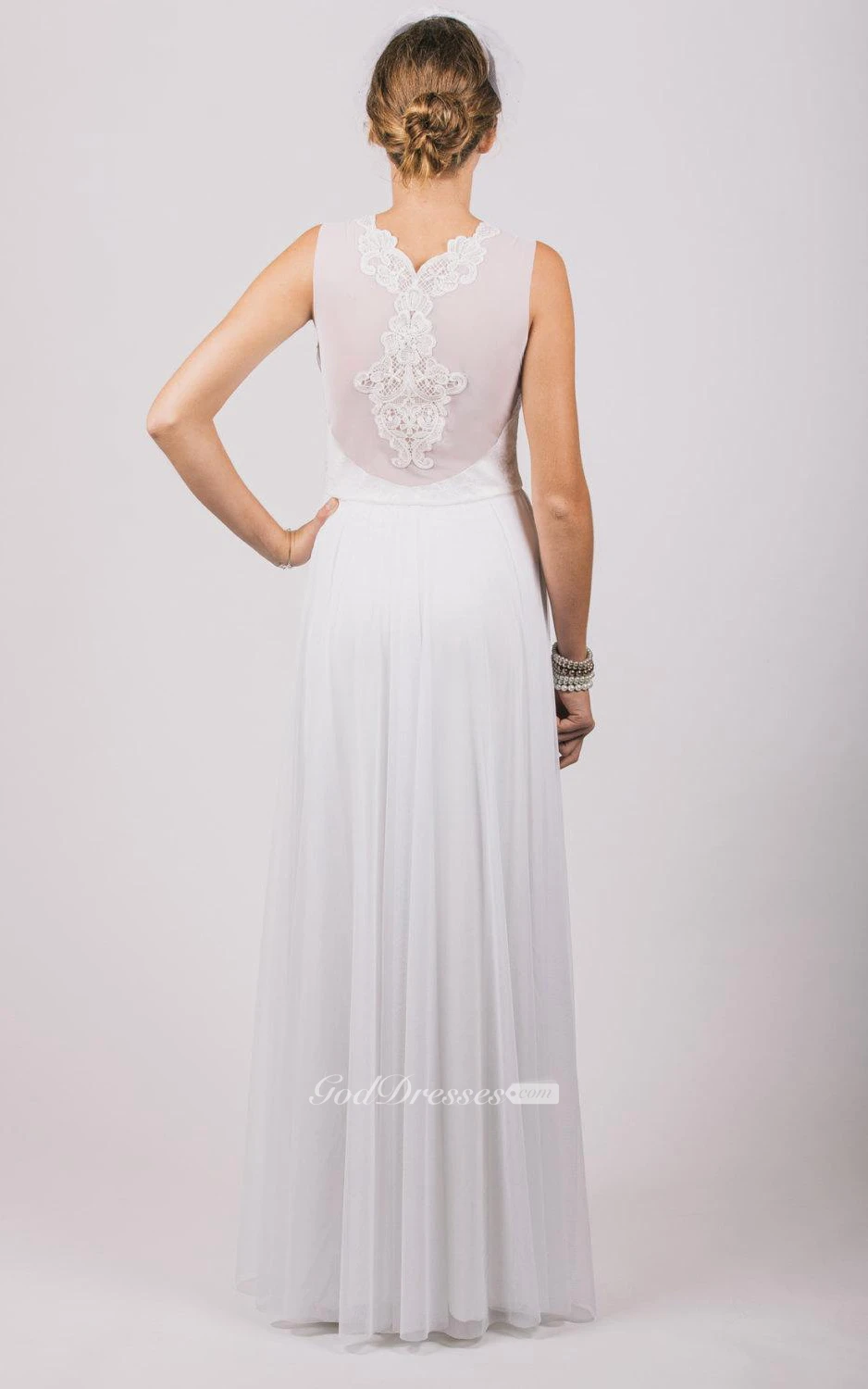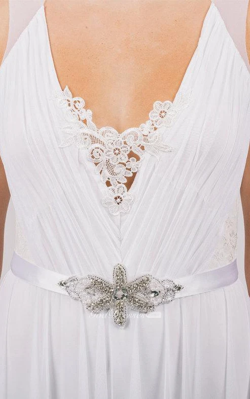 Sleeveless Chiffon A-Line Gown With Lace Embellishment and Pleated Skirt
