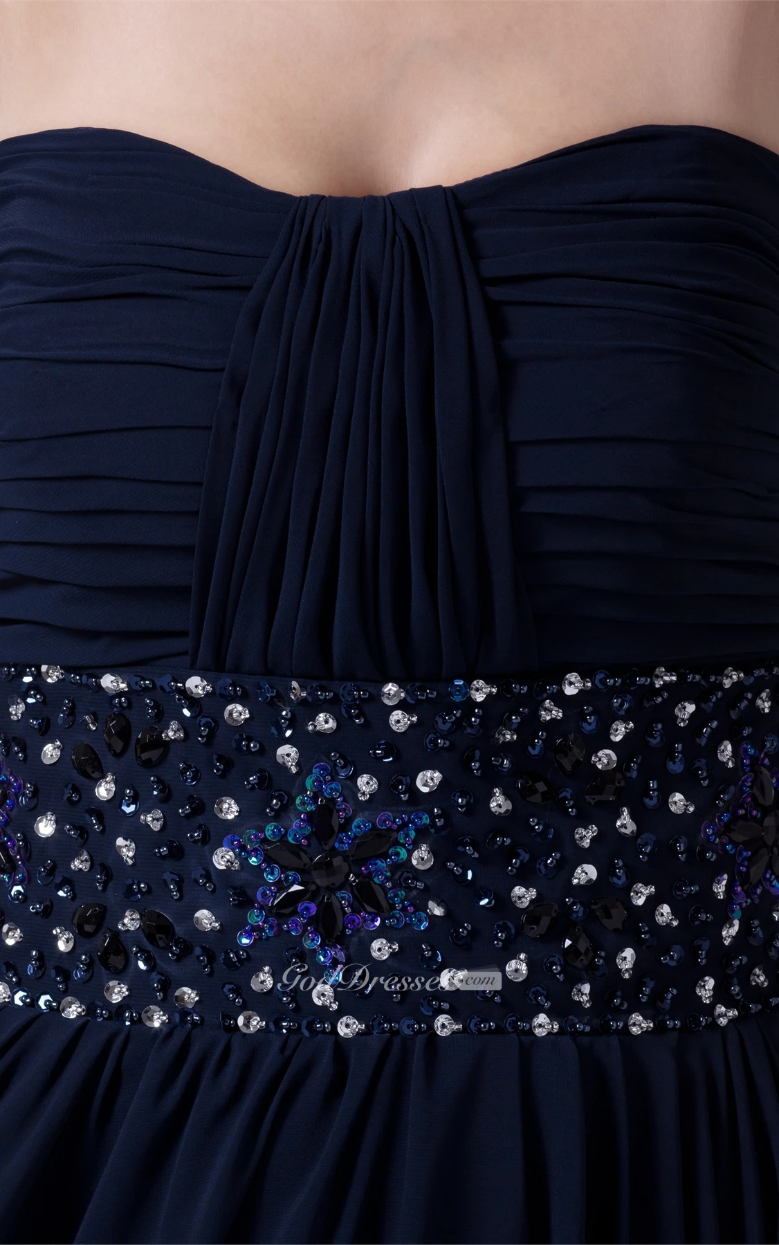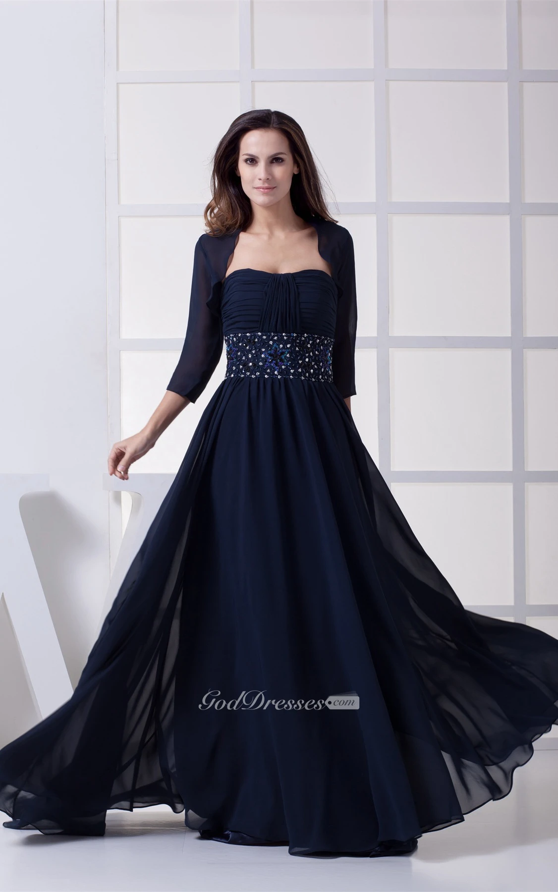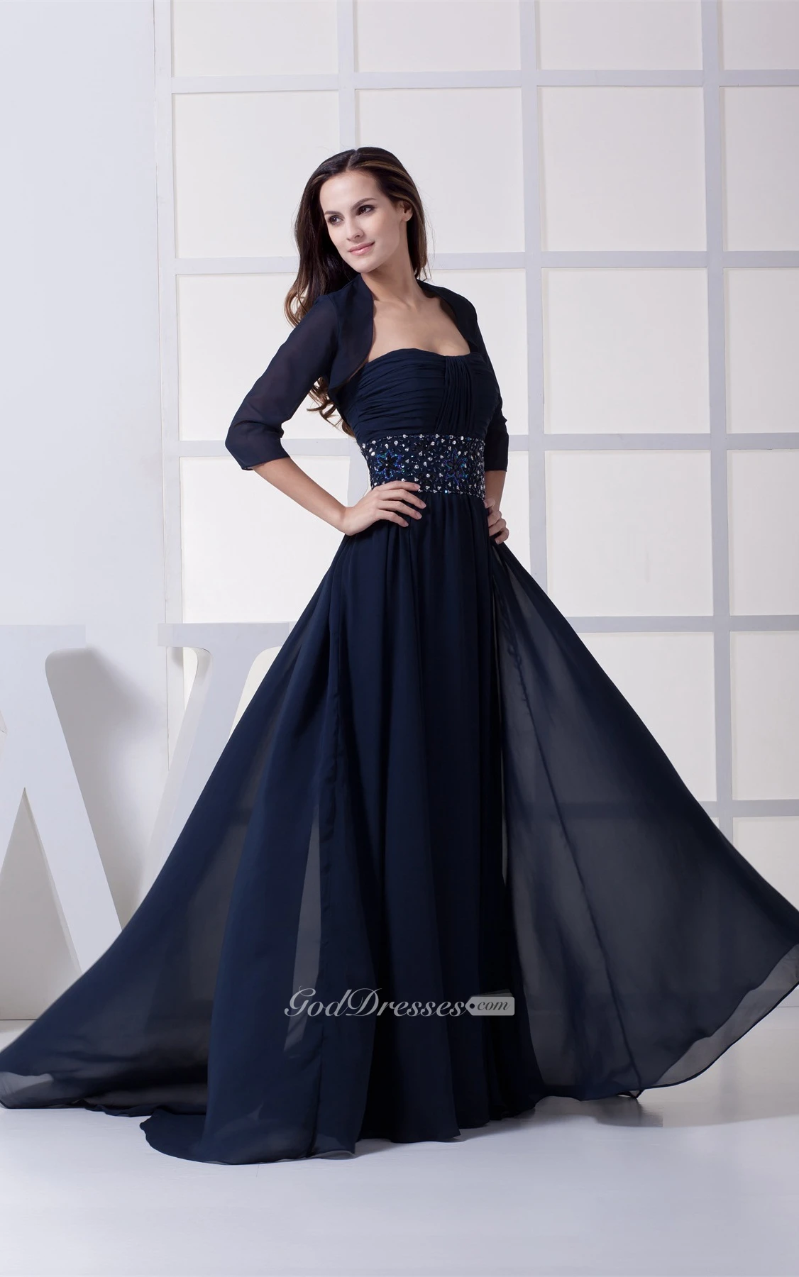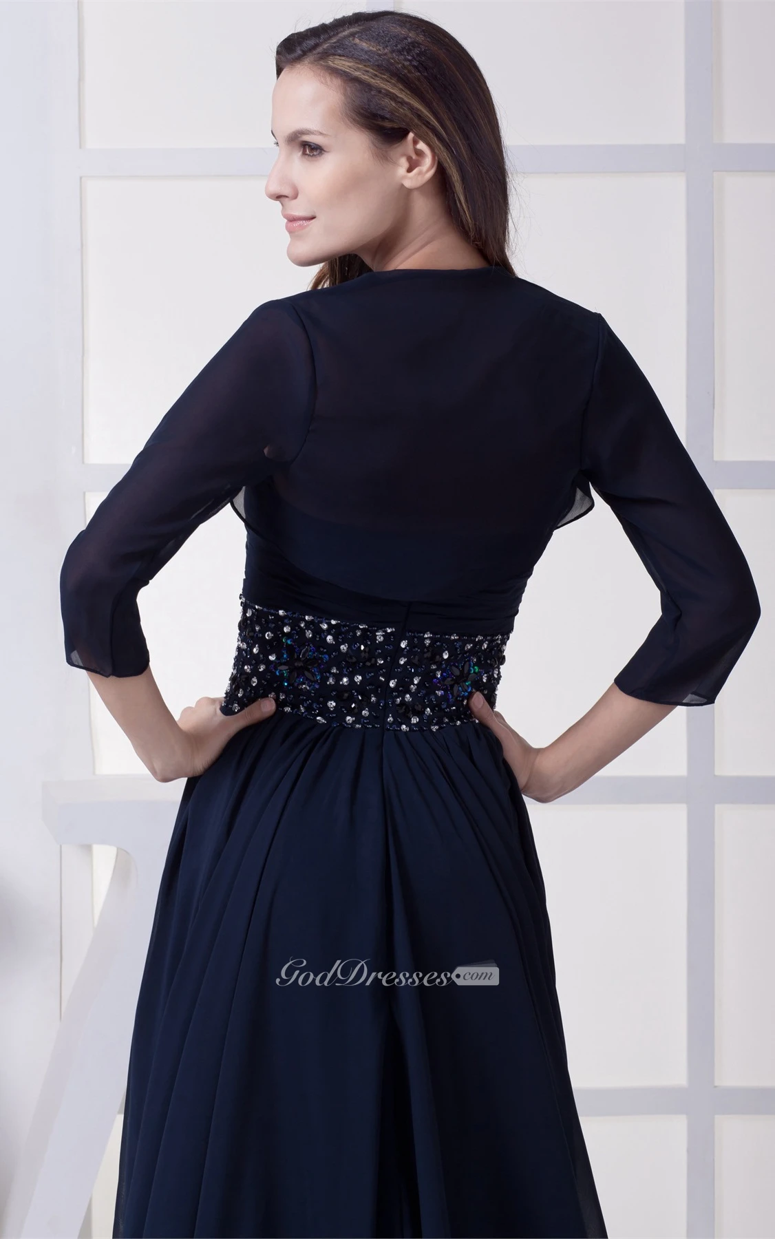 Sleeveless Chiffon Floor-Length Ruched Jeweled Waist and Dress With Bolero