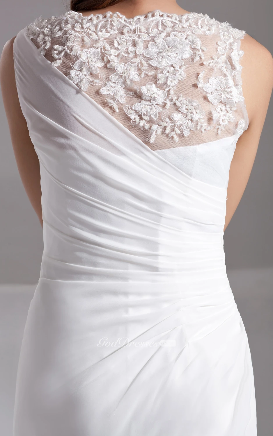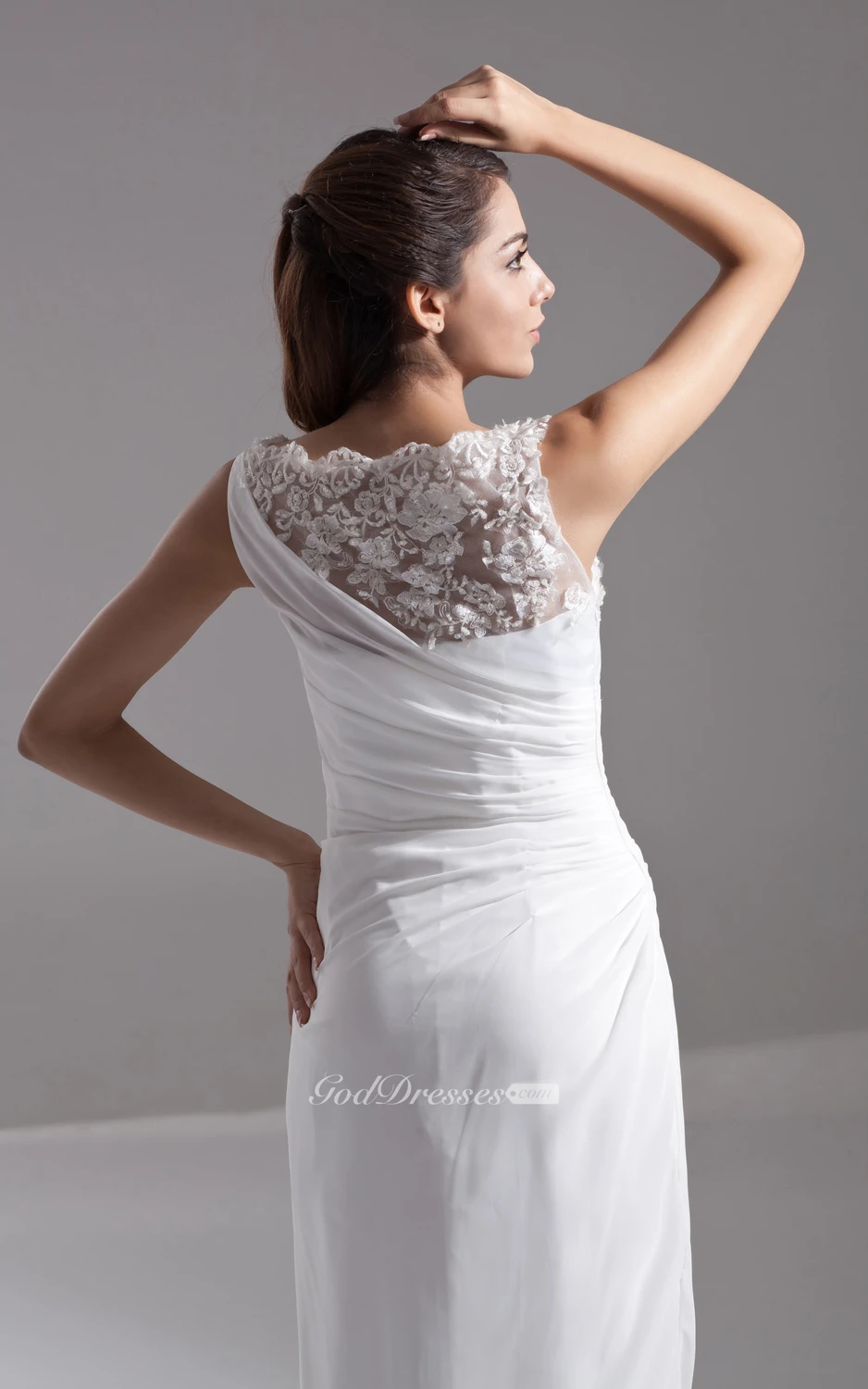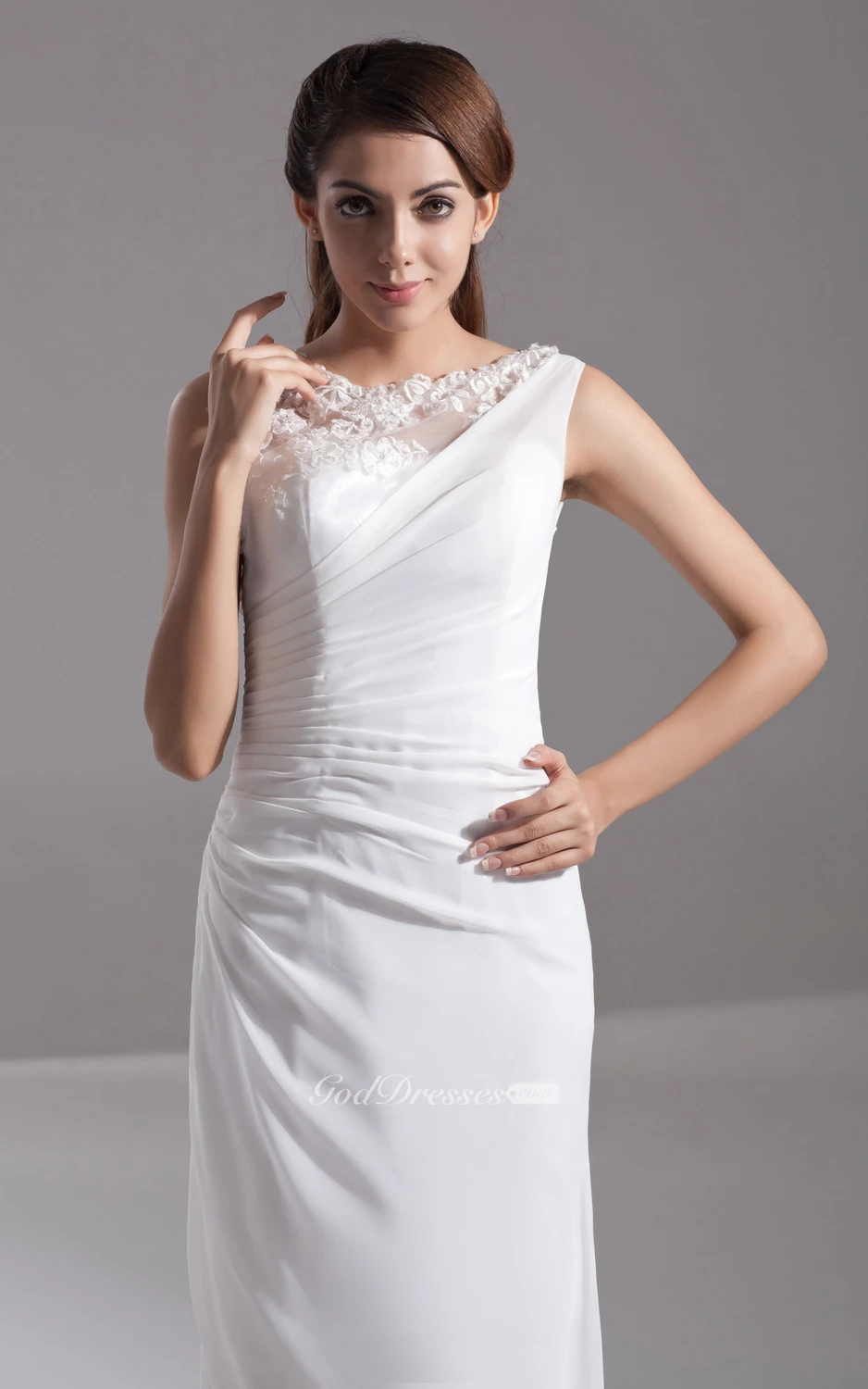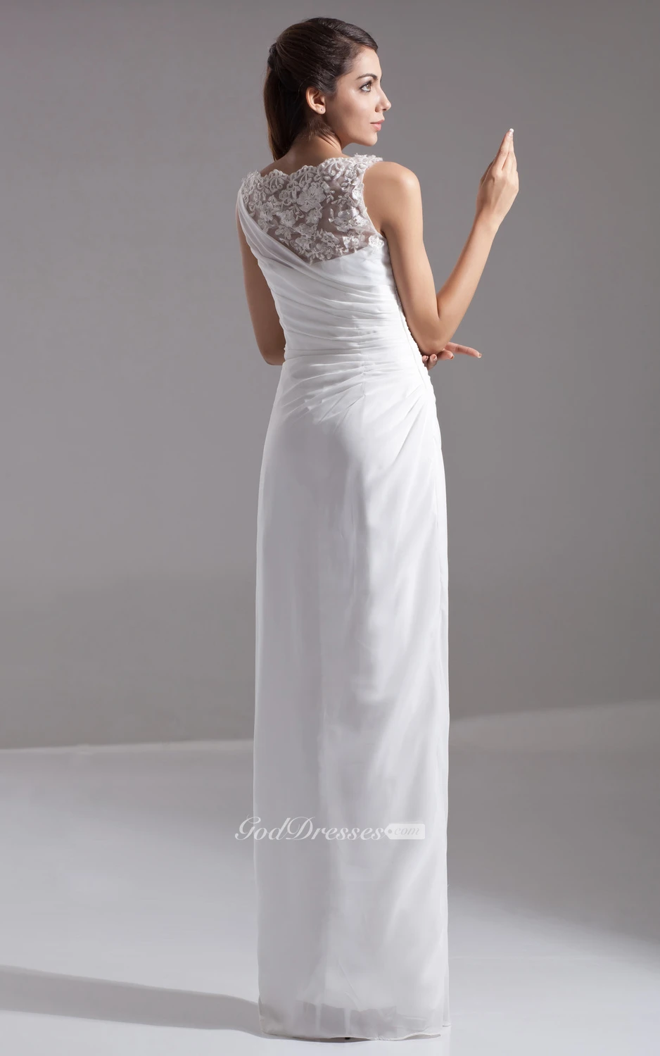 Sleeveless Chiffon Pencil Dress With Side-Draping