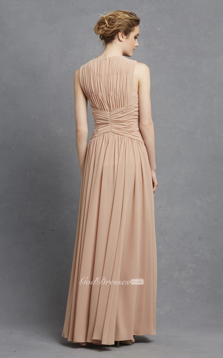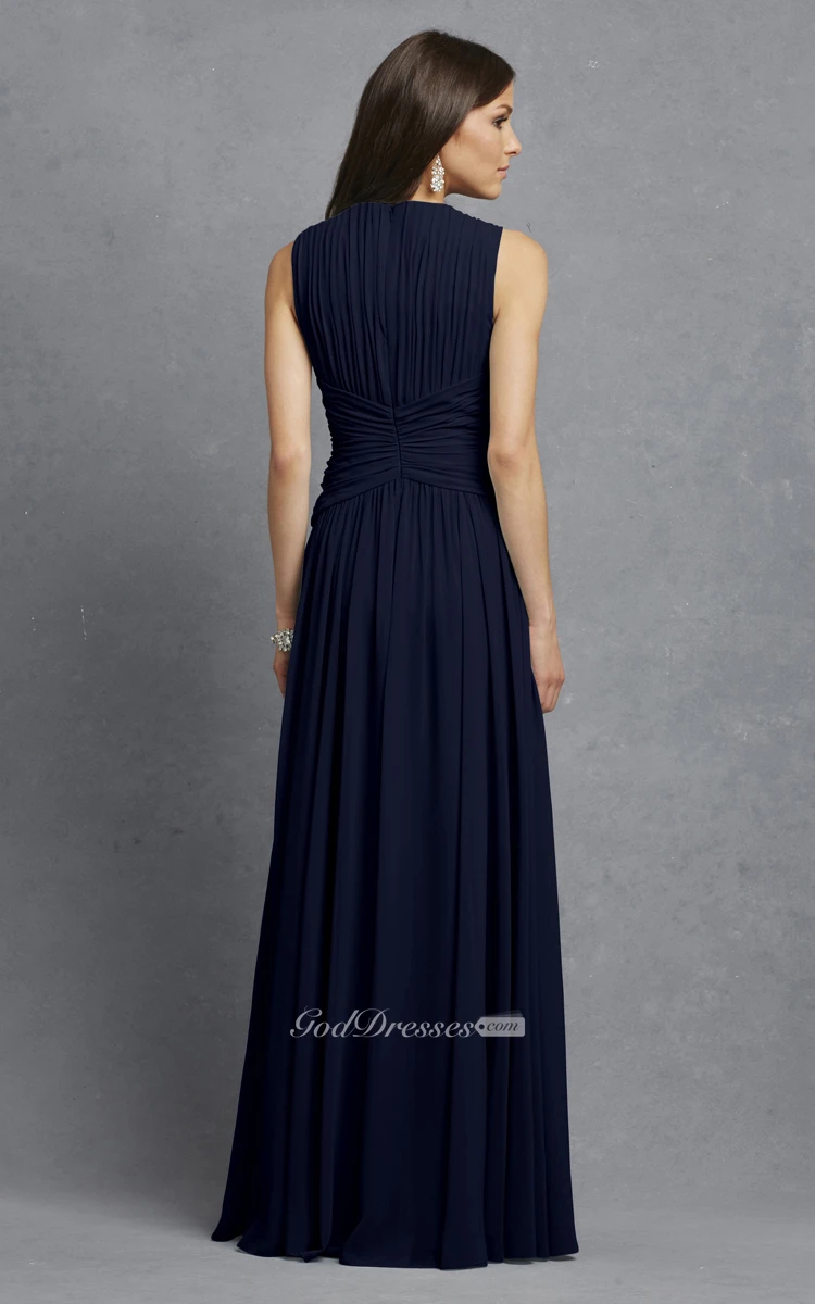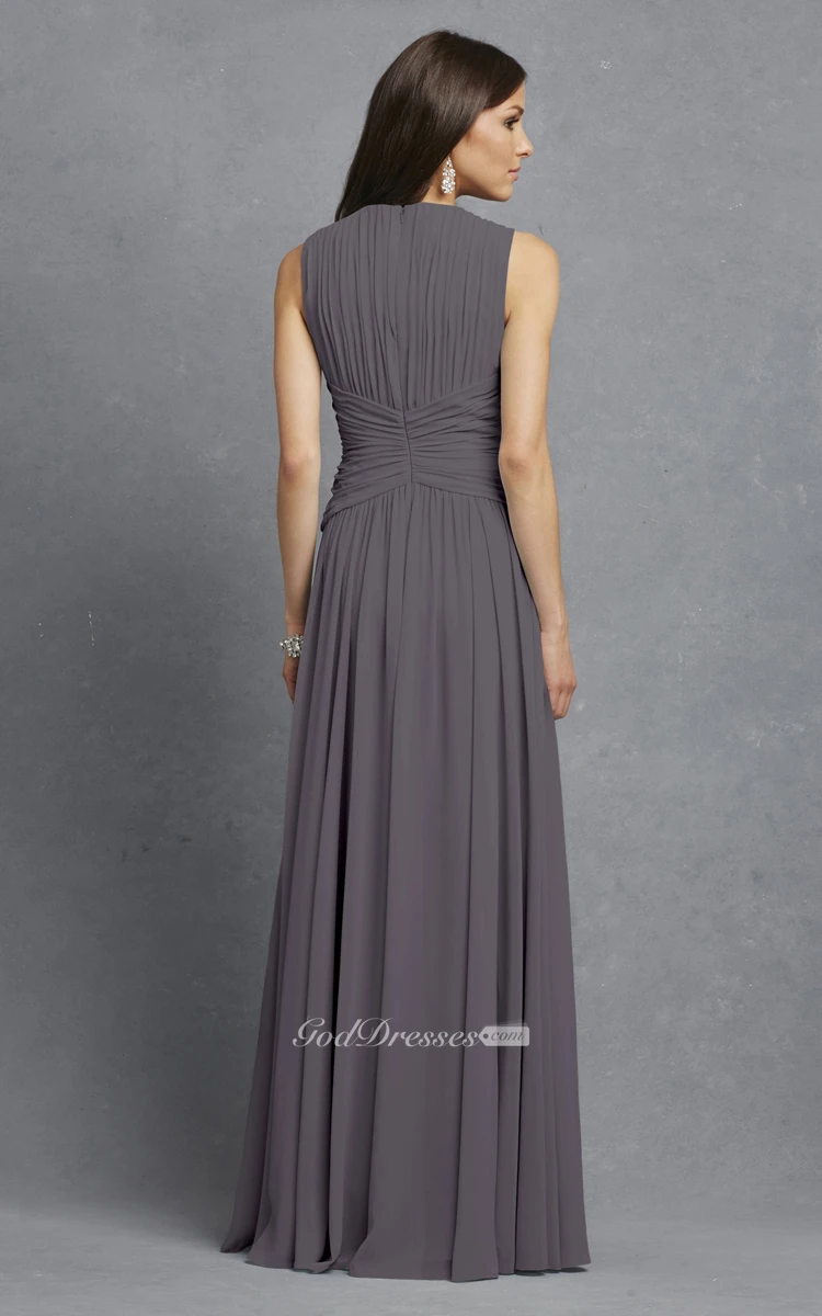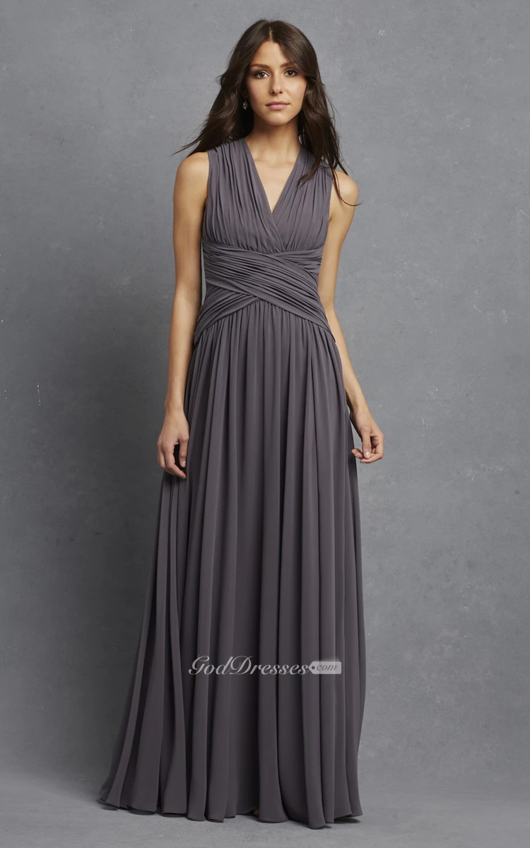 Sleeveless Chiffon V-Neck Dress With Crisscross Ruching