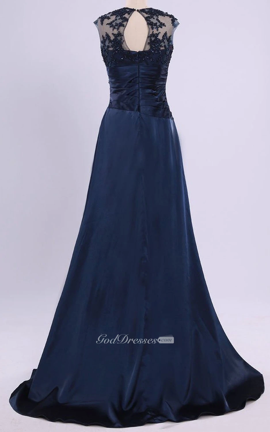 Sleeveless Crystal Ruched Bodice Long Satin Dress