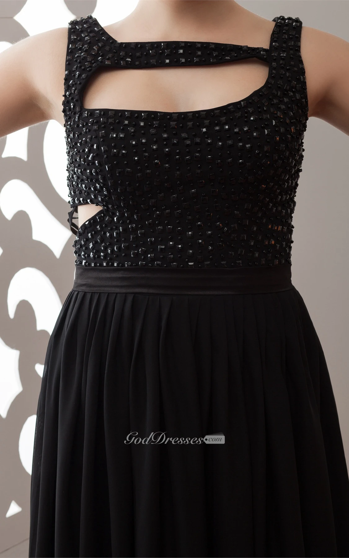 Sleeveless Floor-Length Chiffon Keyhole and Dress With Stress