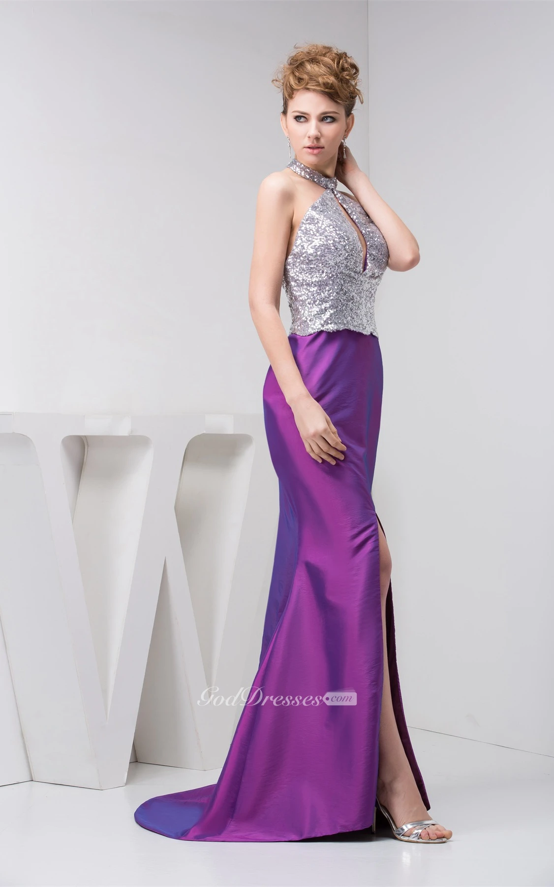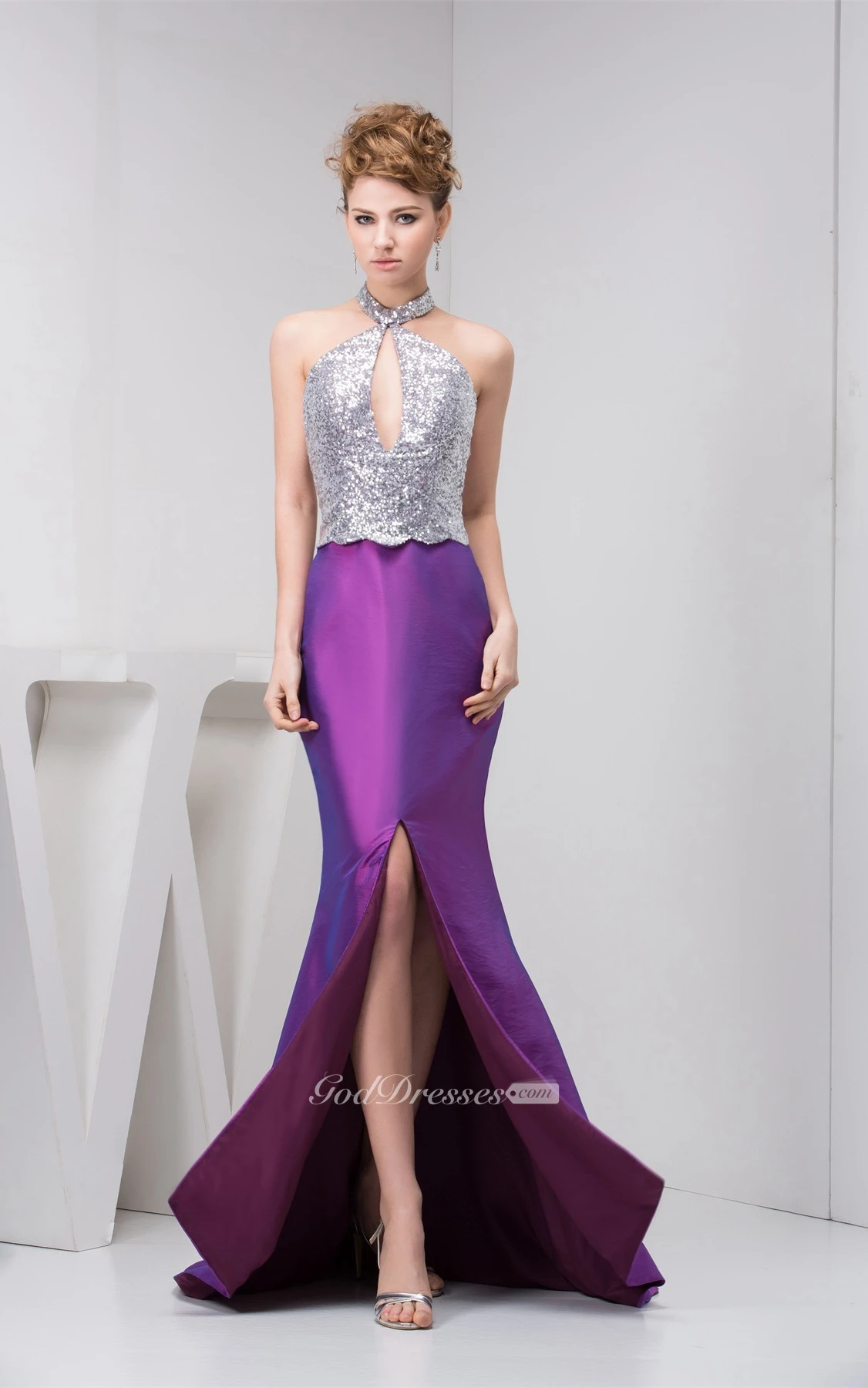 Sleeveless Front-Split Mermaid Keyhole and Dress With Sequins