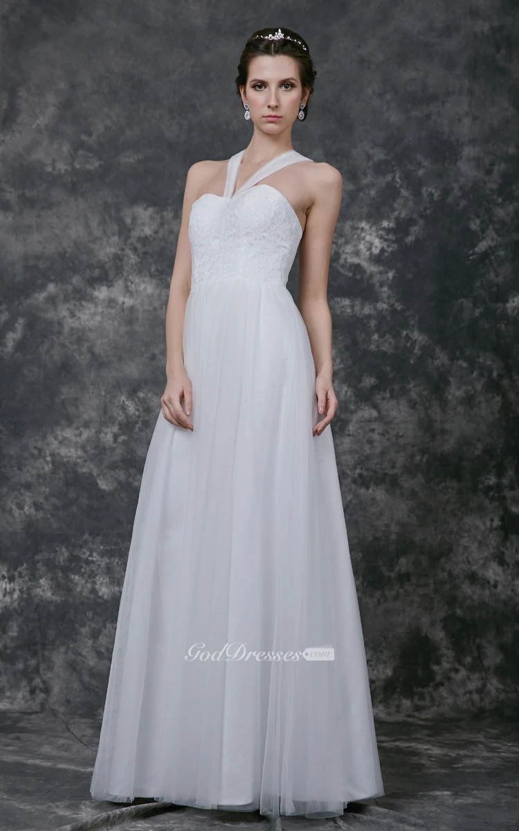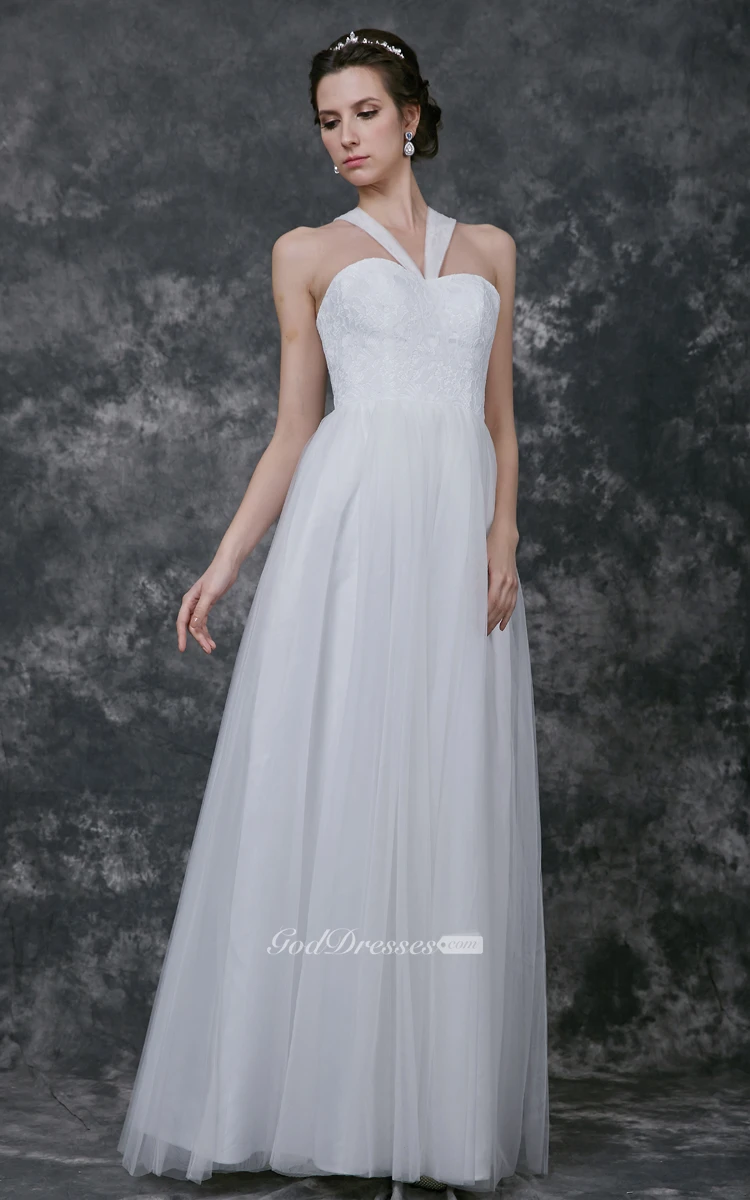 Sleeveless Halter Neck A-line Tulle Gown With Lace-top