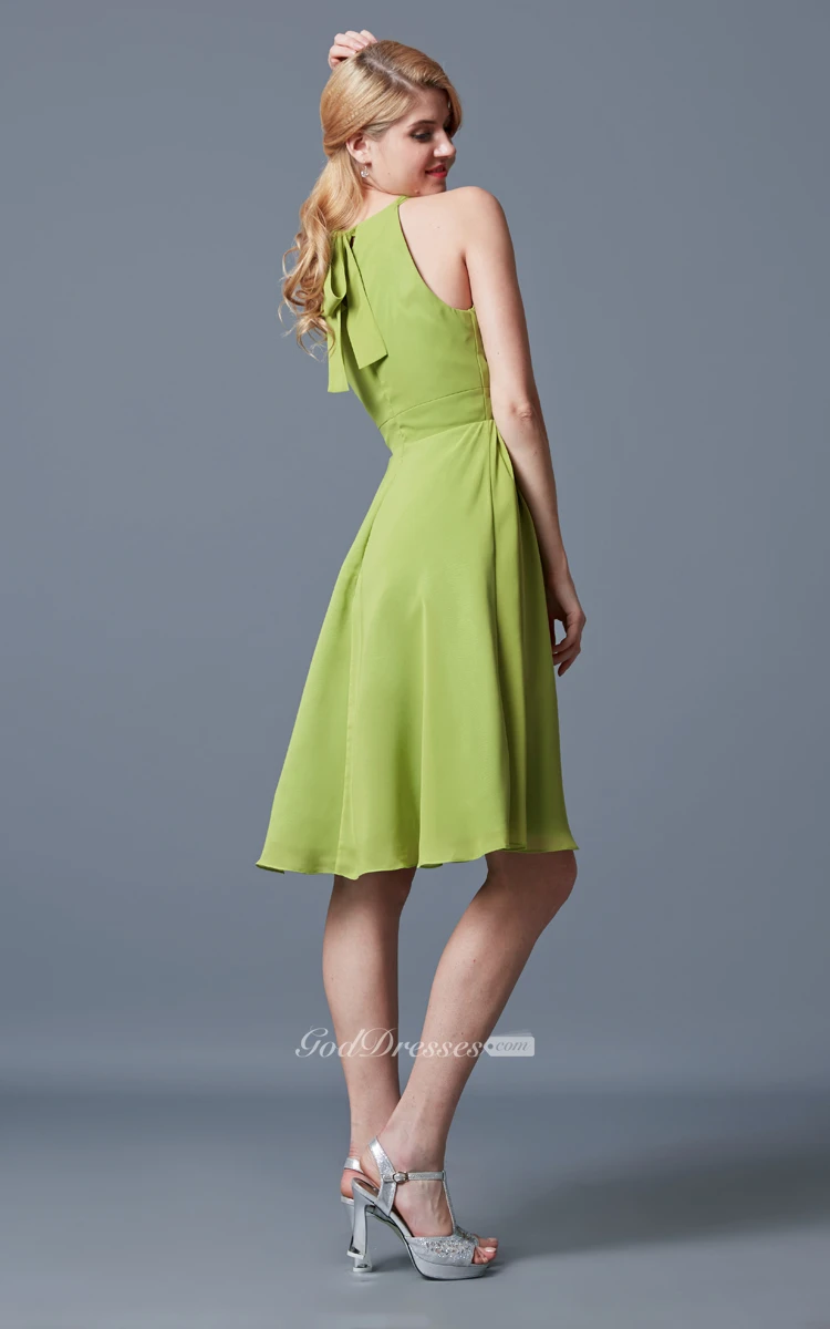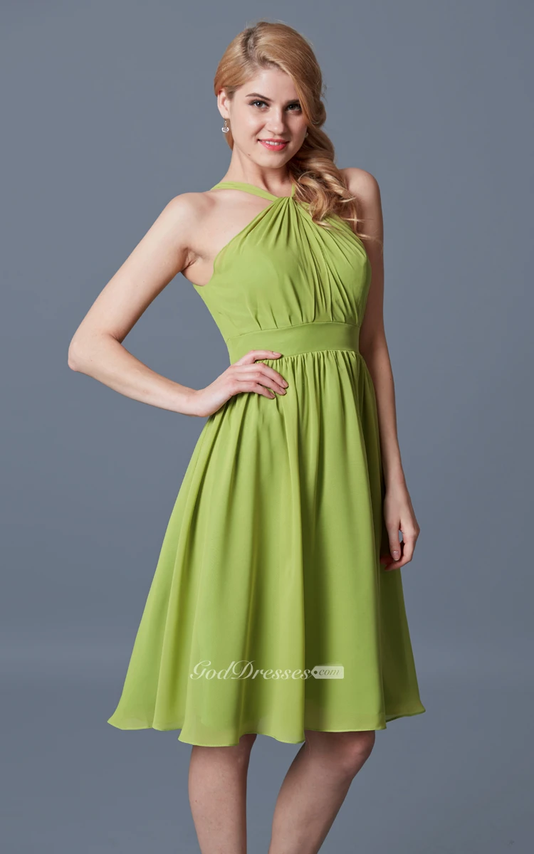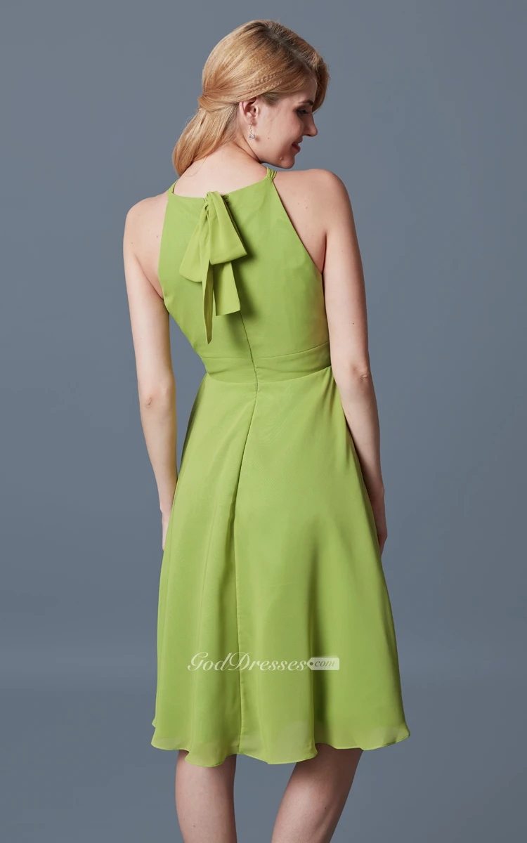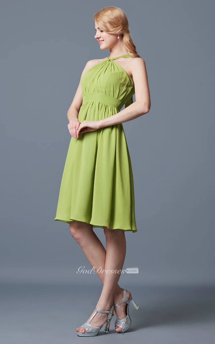 Sleeveless Halter Neck Short Chiffon Dress With Pleats