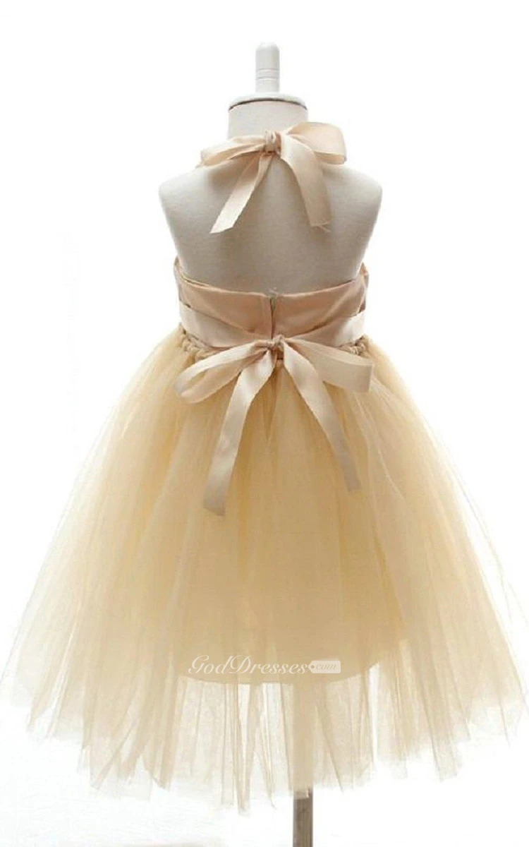 Sleeveless Haltered A-line Dress With Flowers and Bow