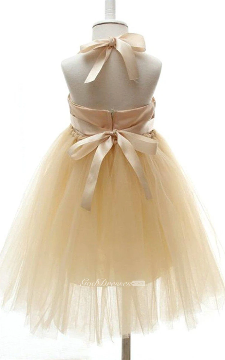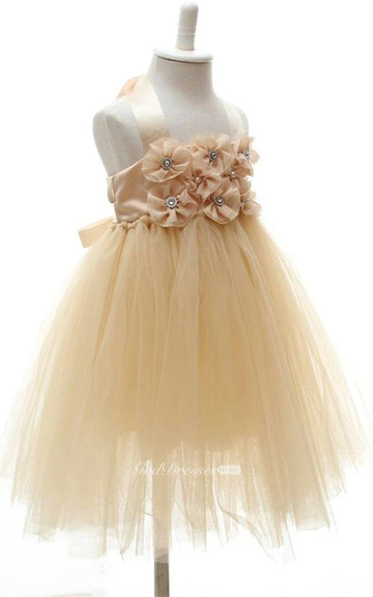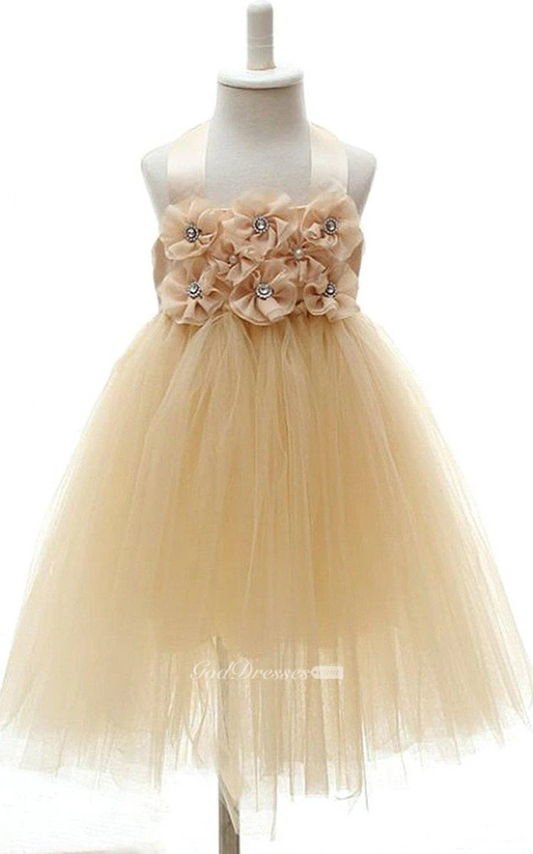 Sleeveless Haltered A-line Dress With Flowers and Pleats