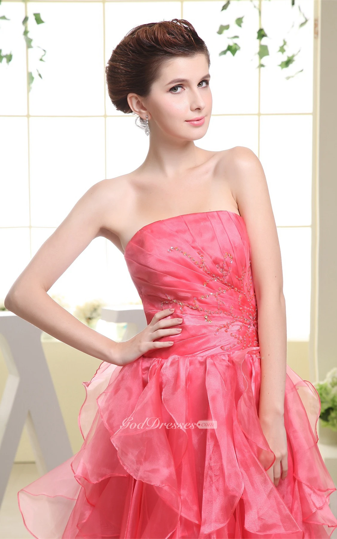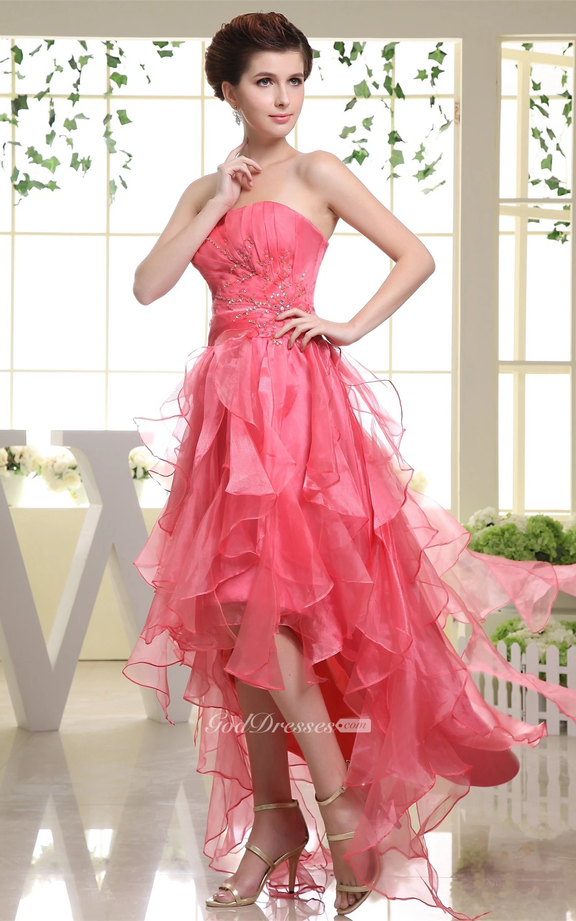 Sleeveless High-Low Cascading Ruffles and Dress With Beading