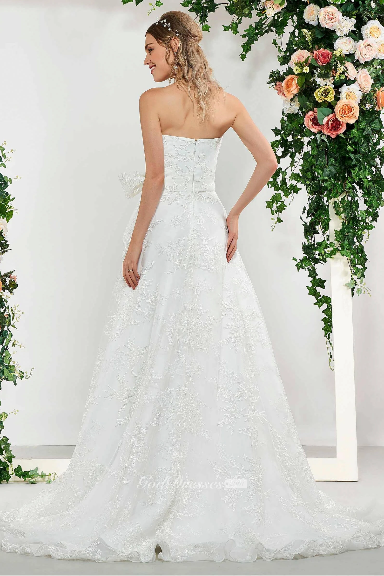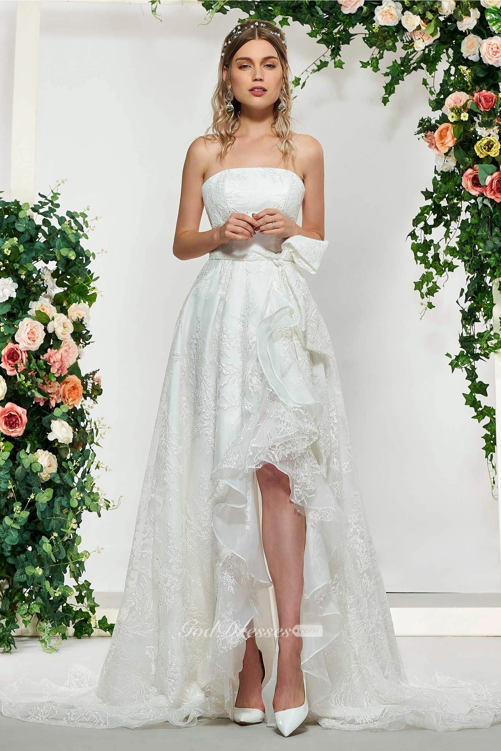 Sleeveless High-low Romantic Lace Bridal Gown With Sash And Bow