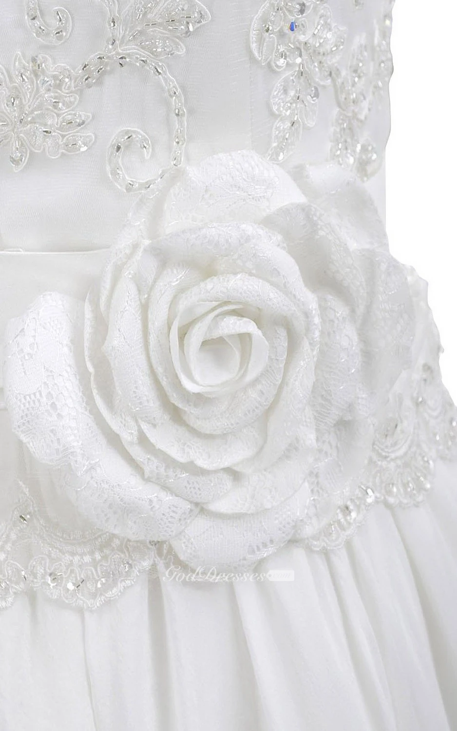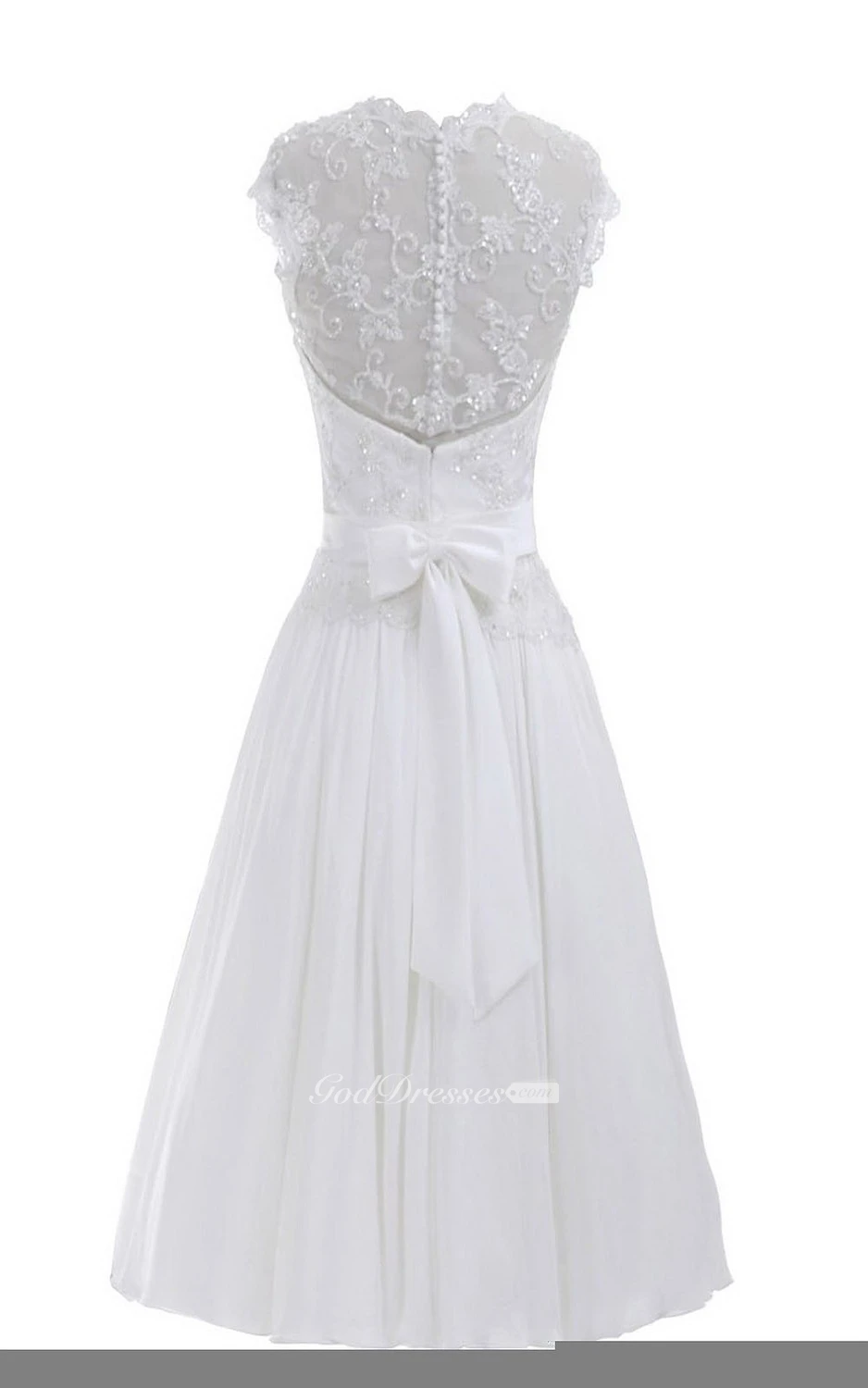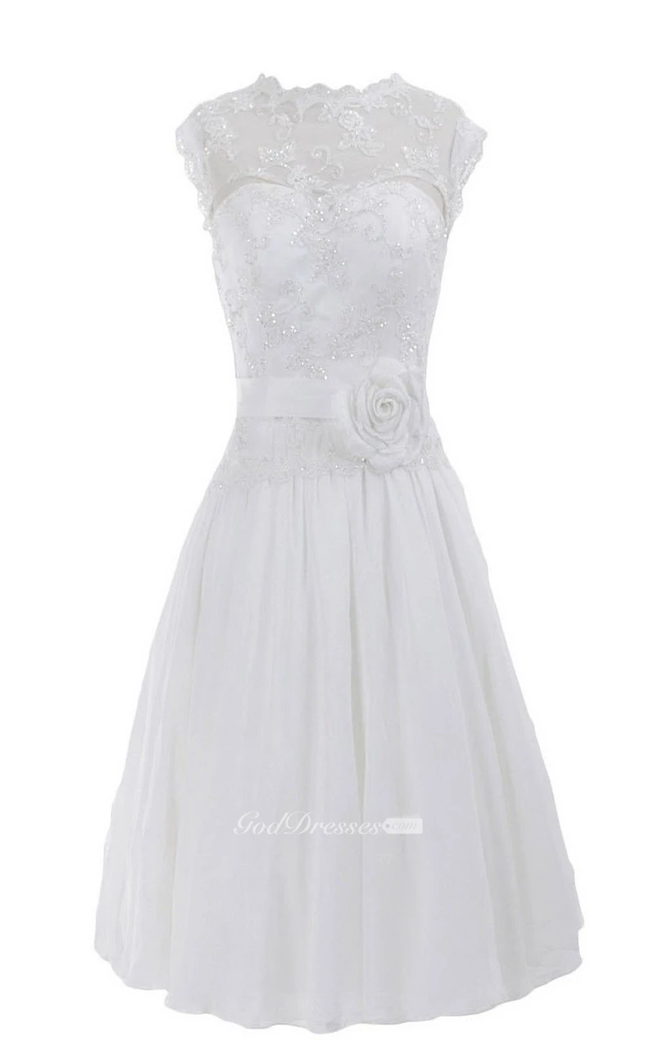 Sleeveless High Neck Appliqued Beaded Knee-length Chiffon Dress