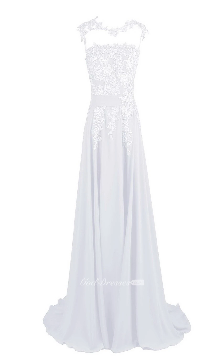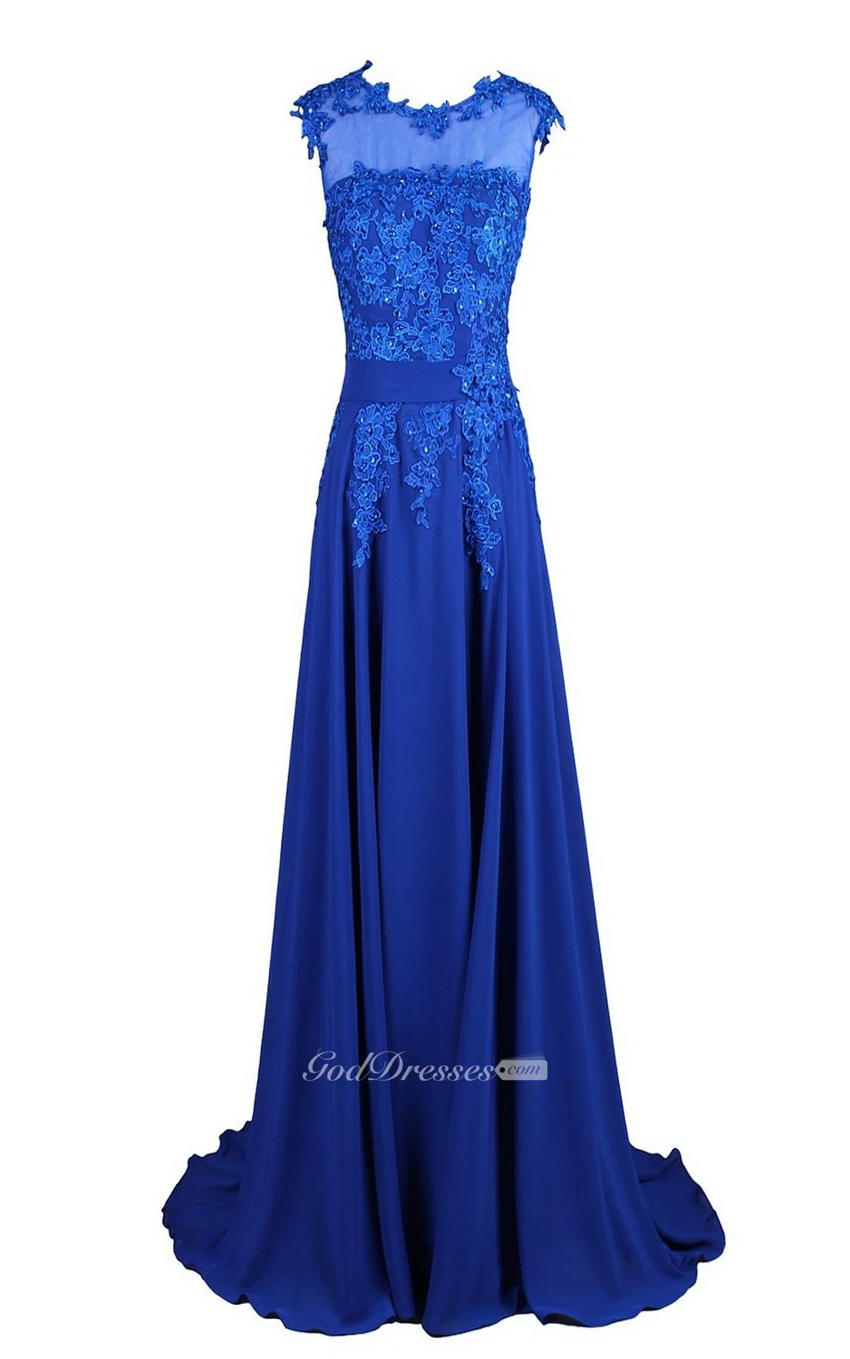 Sleeveless High Neck Appliqued Bodice Long Chiffon Dress