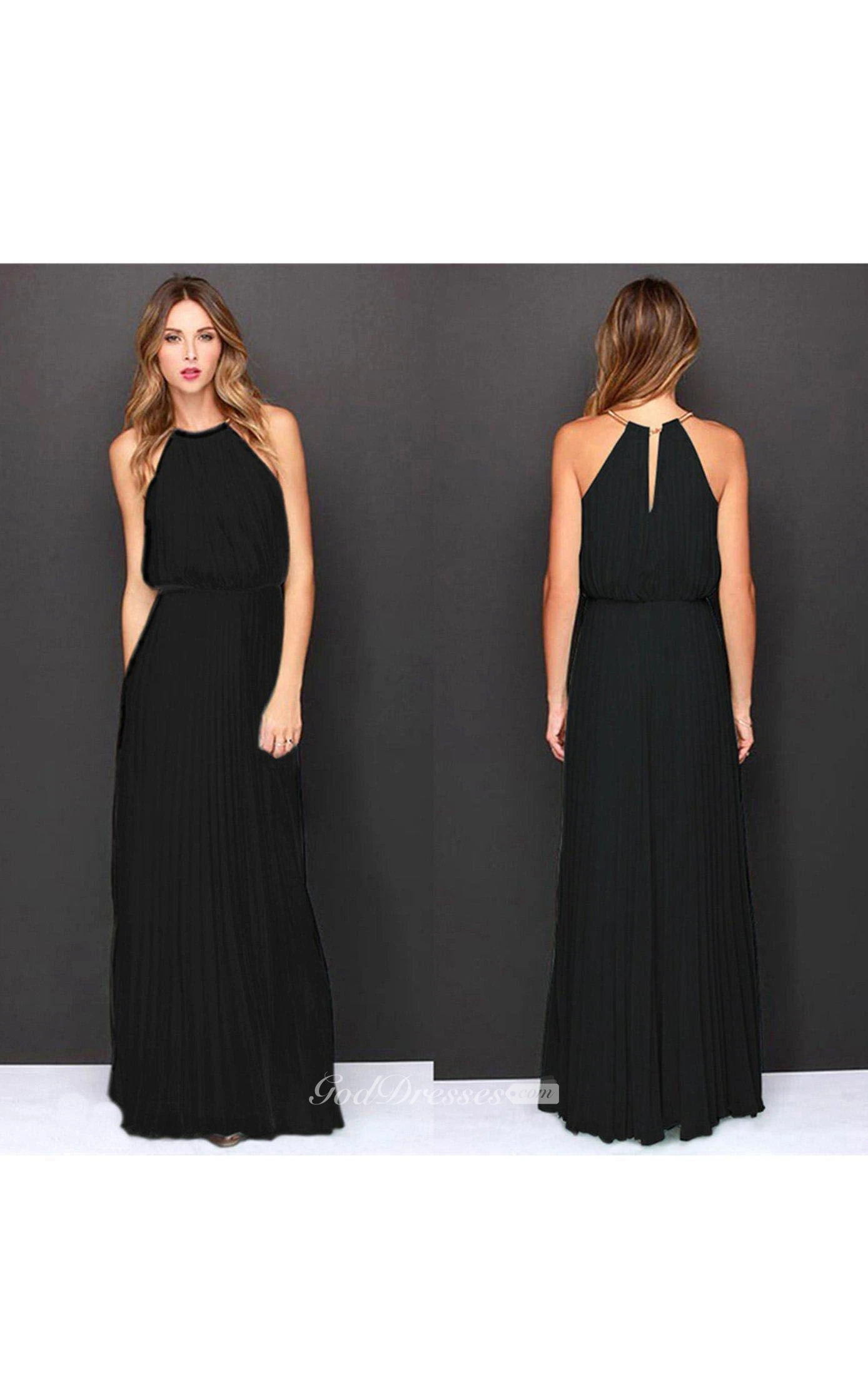 Sleeveless High-neck Floor-length Dress with Keyhole