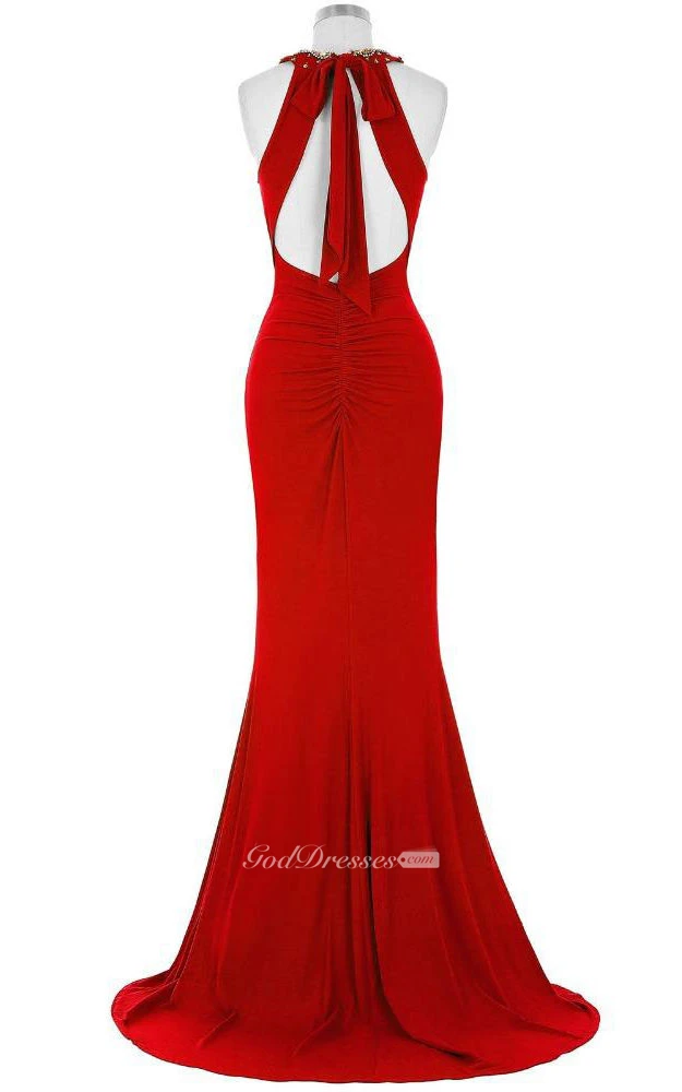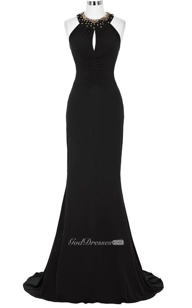 Sleeveless Jewel Neckline Mermaid Dress with Keyhole
