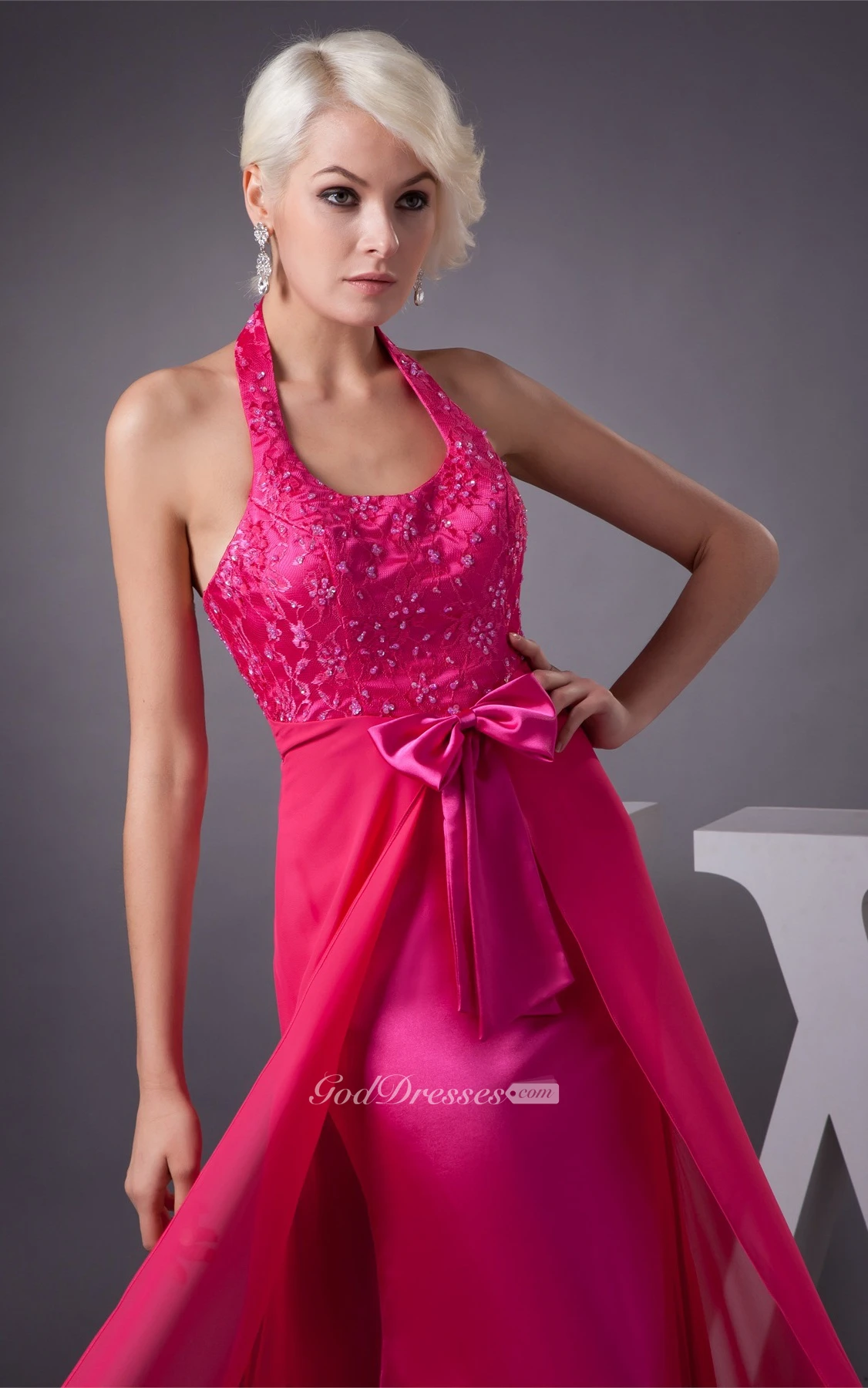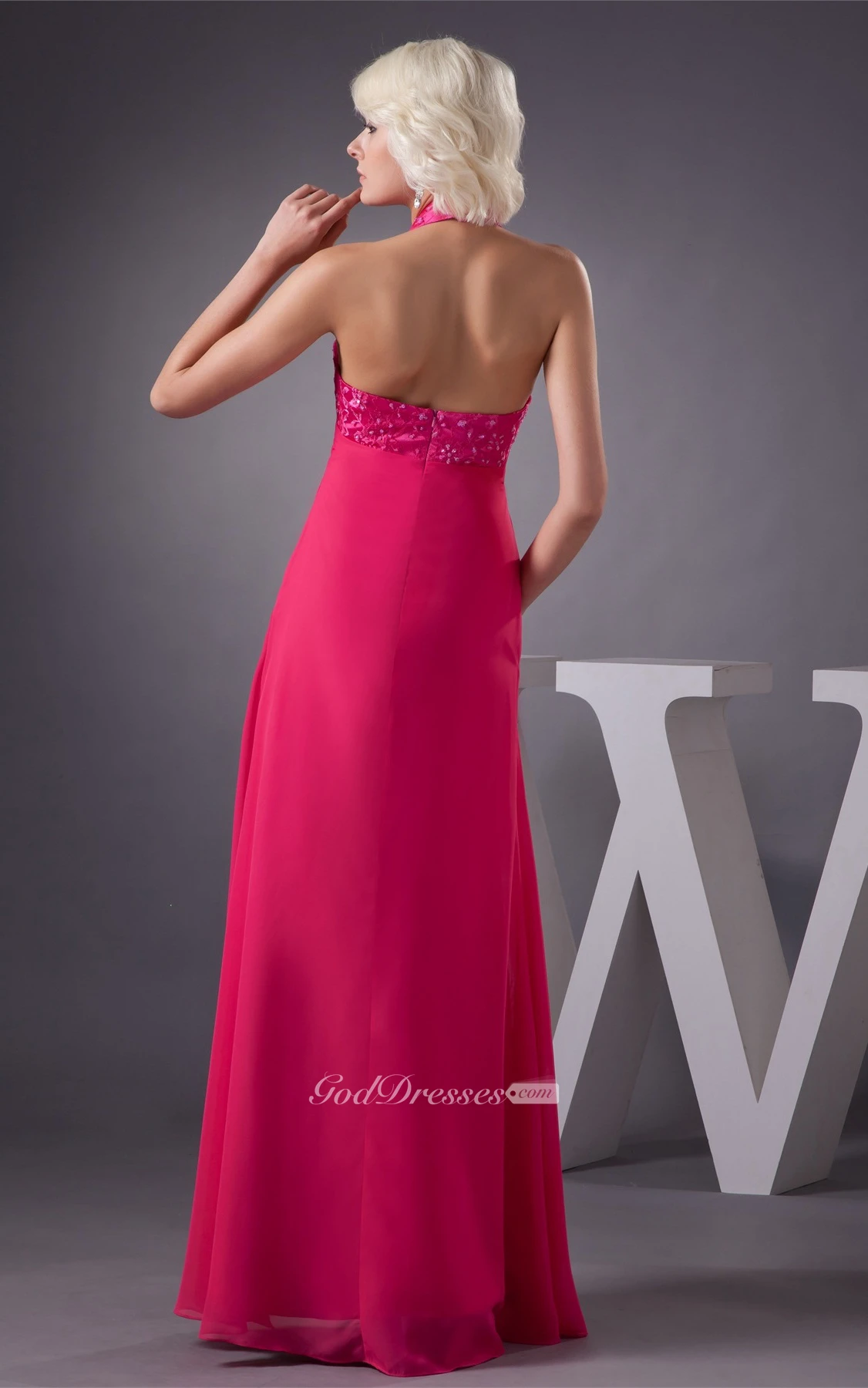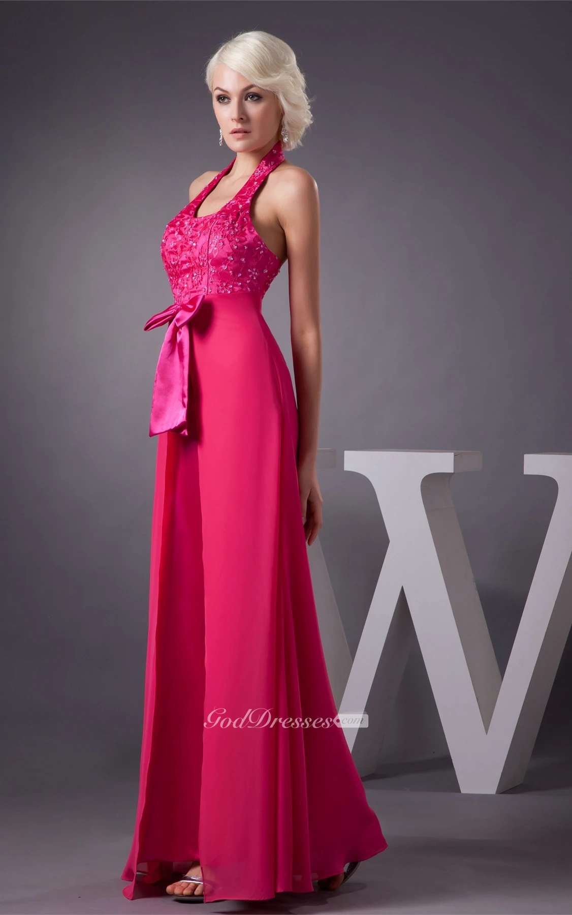 Sleeveless Jeweled Ankle-Length Halter and Dress With Bow